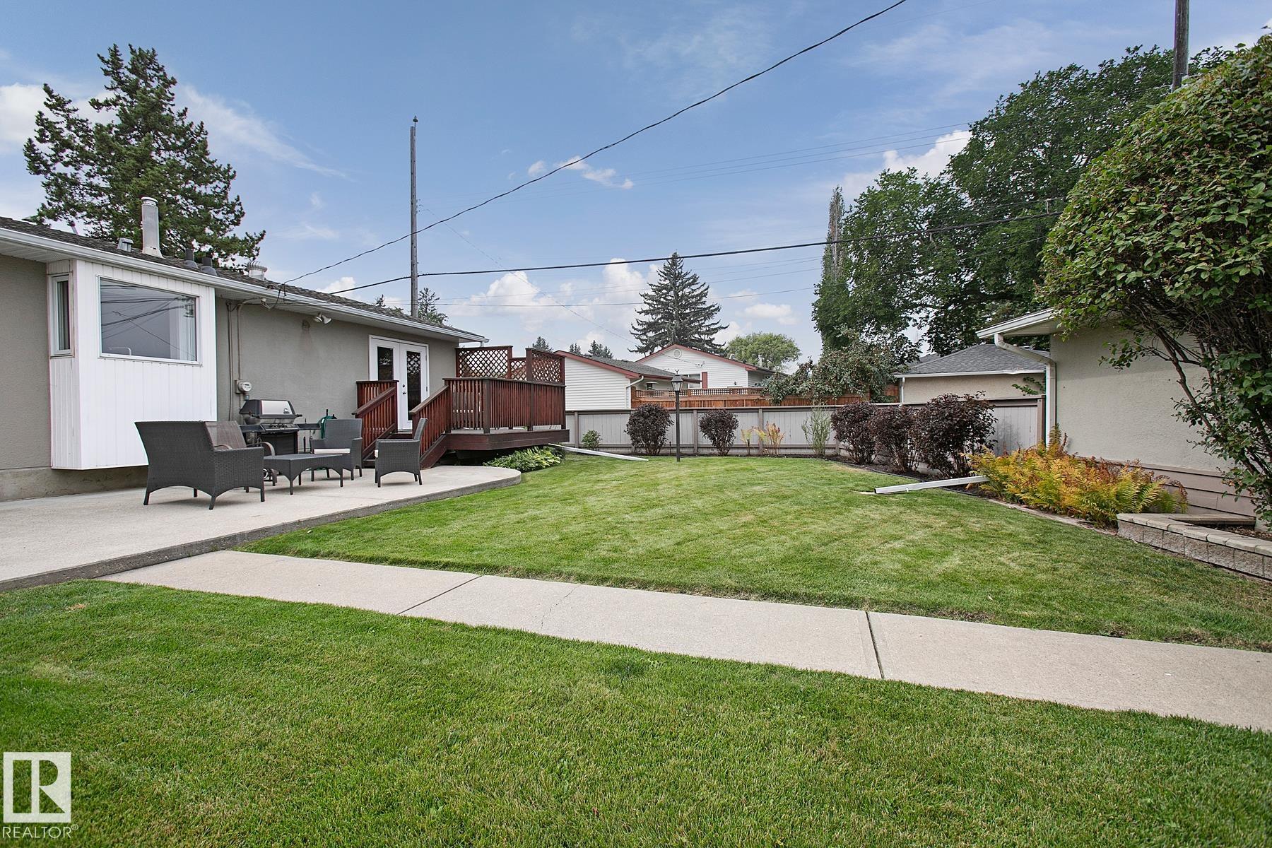 Welcome to this beautifully cared-for 1,250 sq. ft. bungalow in sought-after Capilano. Set on a huge corner lot with top-notch curb appeal, this home features a timeless stucco and stone exterior, manicured landscaping, patio, deck, and a double detached garage. Inside, the main floor has been opened up to create a bright, modern layout with large windows and glass accents that bring in natural light. The spacious master bedroom, second bedroom with patio access, offer flexibility for today?s lifestyle. The fully finished basement includes a second kitchen, bedroom, bathroom, and separate living space ? ideal for extended family. Recent upgrades include a new sewer line, a 2-year-old furnace and AC, and a roof in excellent condition, ensuring peace of mind with no deferred maintenance. Steps to Edmonton?s river valley trails, top-rated schools, and minutes to downtown, this is a rare opportunity to own a turn-key property in one of the city?s most desirable communities.