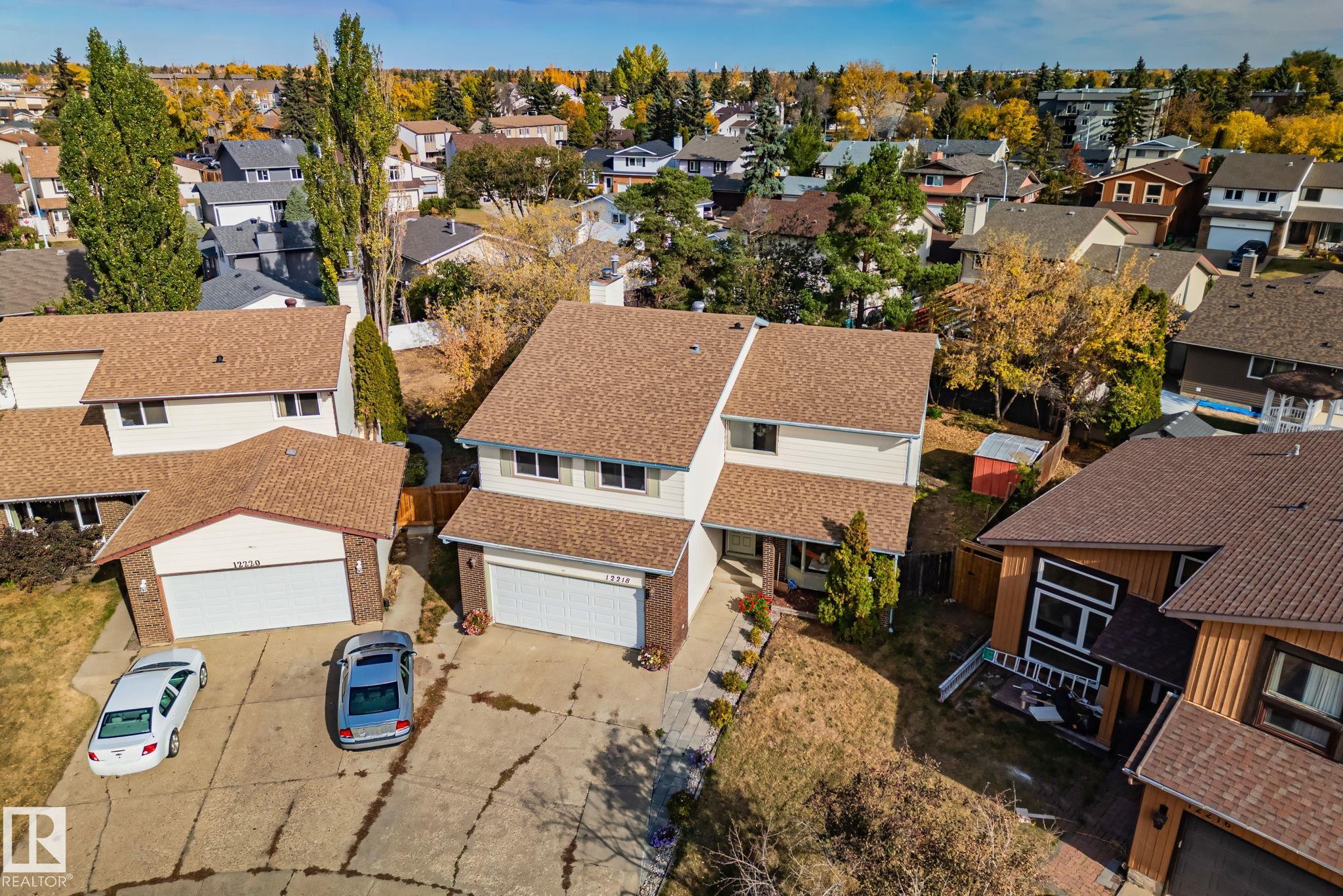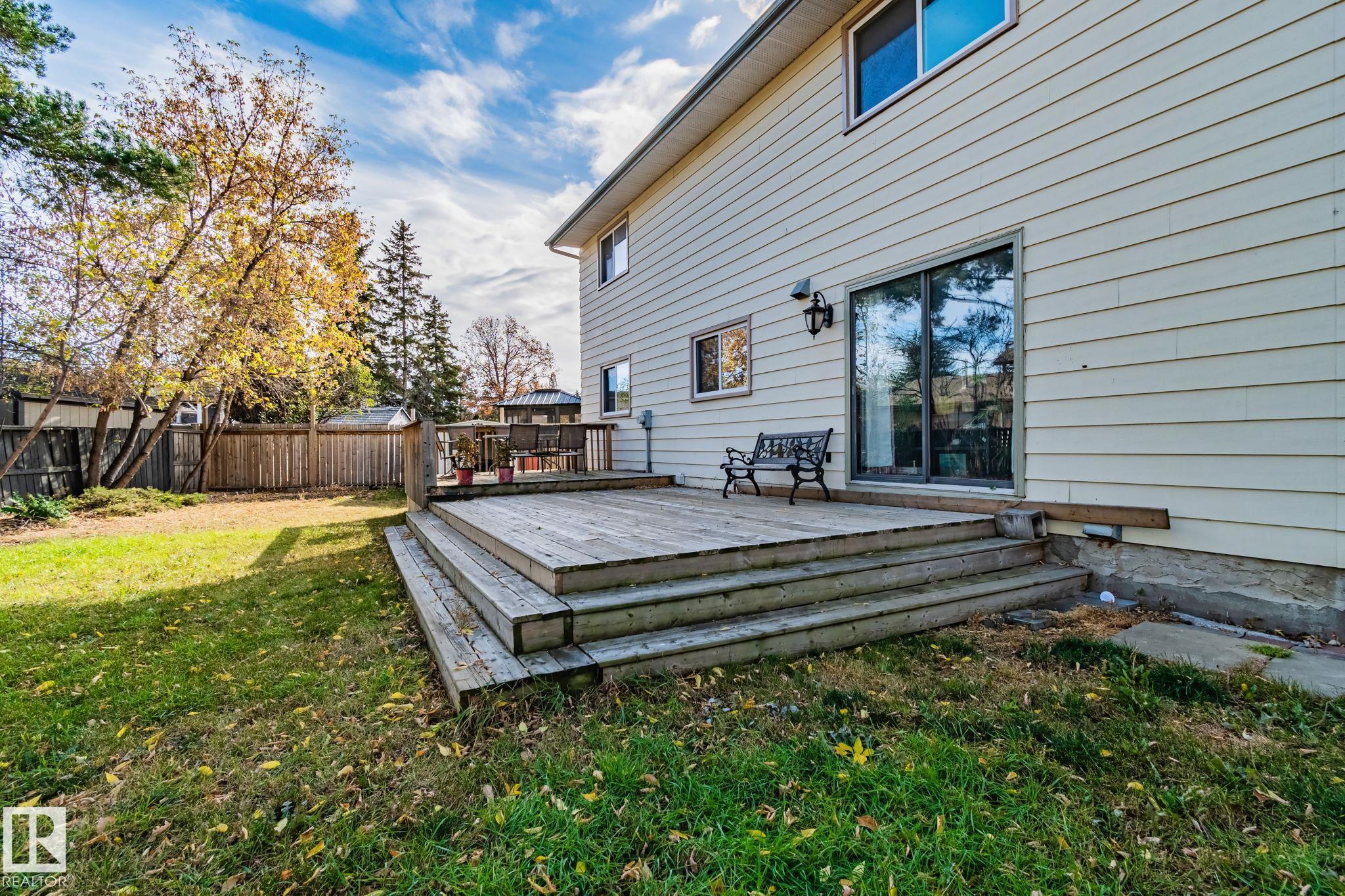 This stunning 2-storey home offers almost 2,400 sq. ft. above grade plus a fully finished basement! The grand foyer welcomes you with a soaring two-storey ceiling and elegant open staircase. The main floor features a formal living and dining area, gleaming hardwood floors, and a spacious kitchen with warm wood cabinetry, gas range, and views of the backyard. The cozy family room with a wood-burning fireplace opens onto the deck?perfect for entertaining. Upstairs, an open loft makes a great den, office, or reading nook, along with four generous bedrooms. The primary suite includes a walk-in closet and a private 5-piece ensuite. The finished basement adds a large rec room, bedroom, and full bath. Updates include two Carrier furnaces, a newer roof, insulation, paint, hot water tank (2020), and washer/dryer (2021). Located on a quiet cul-de-sac on a large pie-shaped, fully fenced lot, this home offers incredible space, comfort, and timeless charm!
