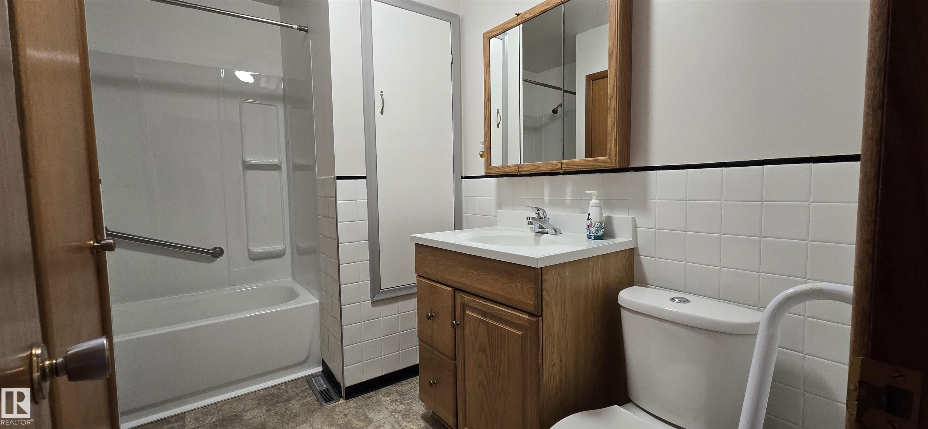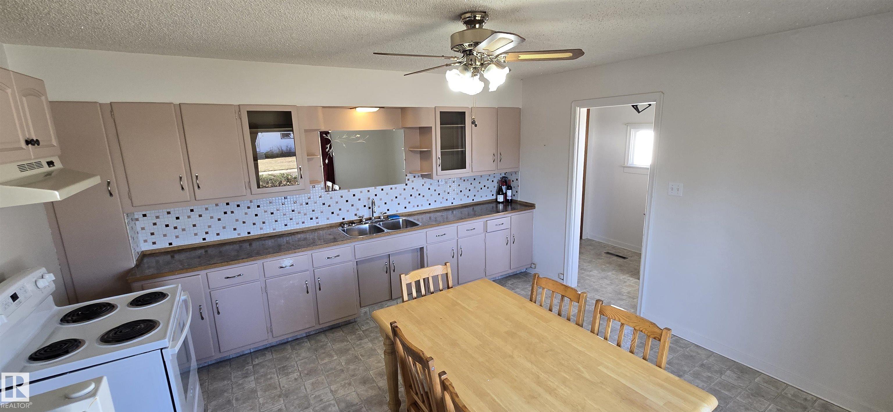 Well maintained 2 bedroom and 2 bathroom bungalow located on the North part of Vegreville. Open kitchen with ample room for dining room table. Living room features side access to the yard. Basement is partly finished with a 3 piece bathroom, laundry and office. Massive 50x150 fenced yard with back alley access, front drive driveway and a single detached garage. Located in Vegreville, under 45 minutes to Sherwood Park down HWY 16.