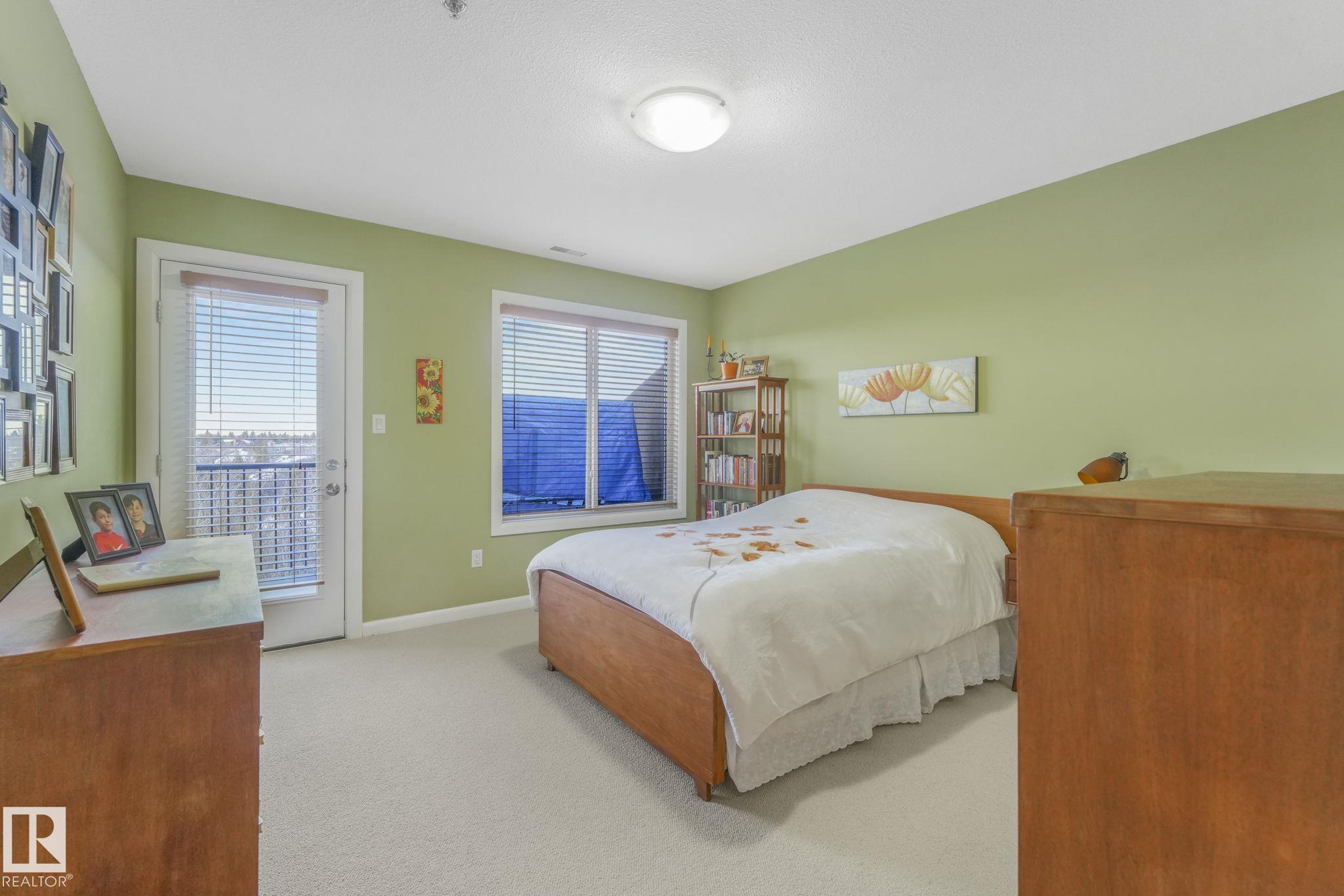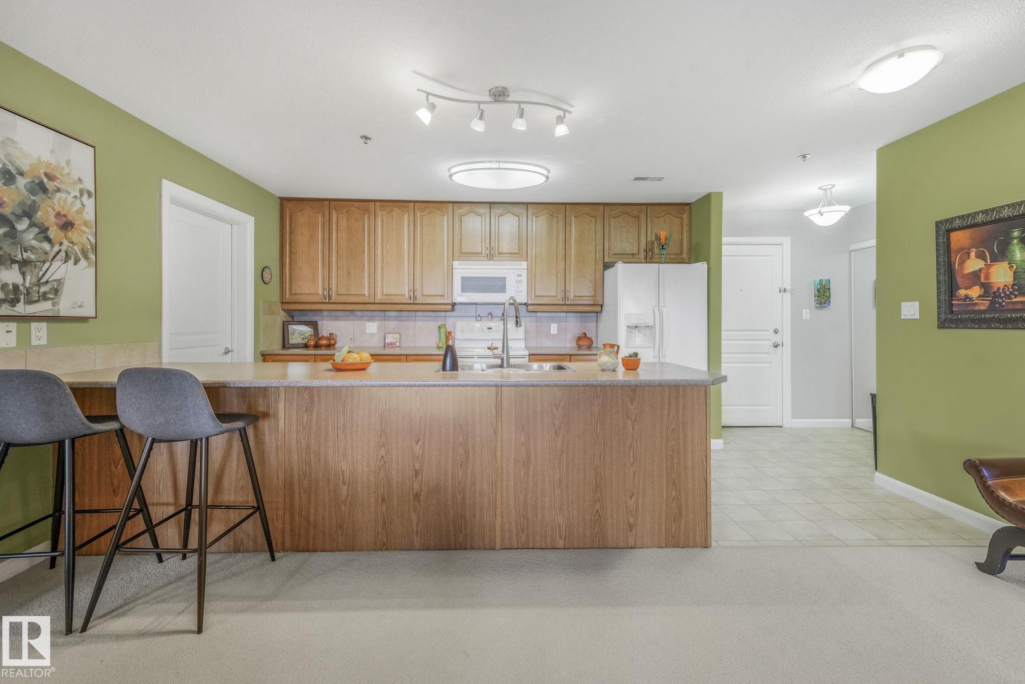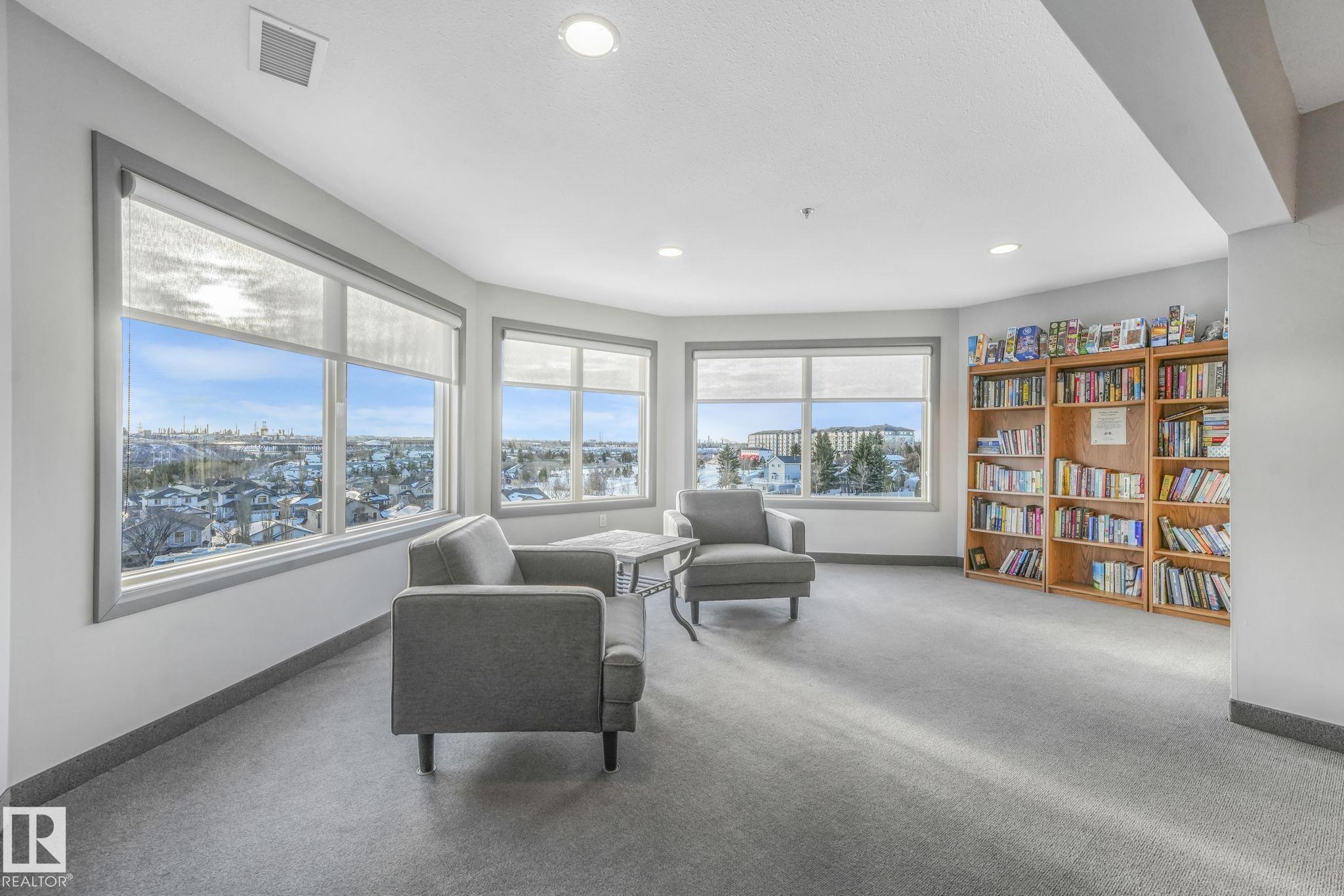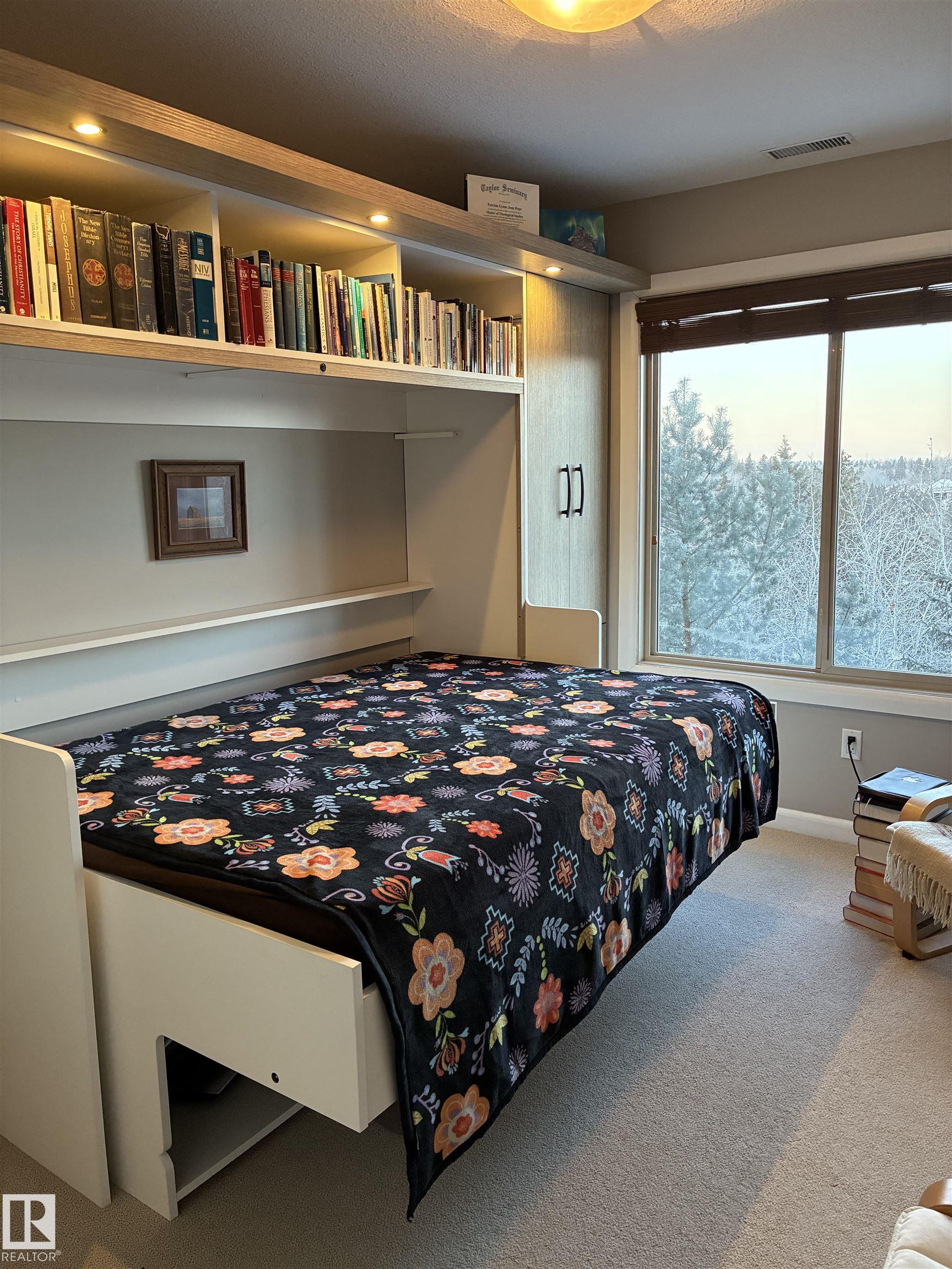 OVERLOOKING THE RAVINE! IMMACULATE TOP FLOOR UNIT. This modern 2 bedroom and 2 full bath, 18+ unit in the "Ridge At Hermitage" is immaculate! Features include: modern open concept kitchen with expansive breakfast bar, bright and warm ceiling height cabinets, spacious living room, large balcony, insuite laundry/storage, central elevators and underground parking stall with storage cage., Main bedroom has a walk-through closet and a 3pc ensuite. 2nd bedroom is next to a 4pc bath and has a custom murphy bed that converts to a desk and filing cabinet(5000. value). Bedrooms are on opposite ends of unit perfect for company/room mate. Parking is close to elevator. Extra features: A/C, visitor parking, car wash, Social and Exercise rooms. All utilities are included in the condo fees, except power PET FREINDLY with board approval close to off leash area. Extensive walking/biking trails, skiing and golf nearby. Quick access to all amenities and major routes!