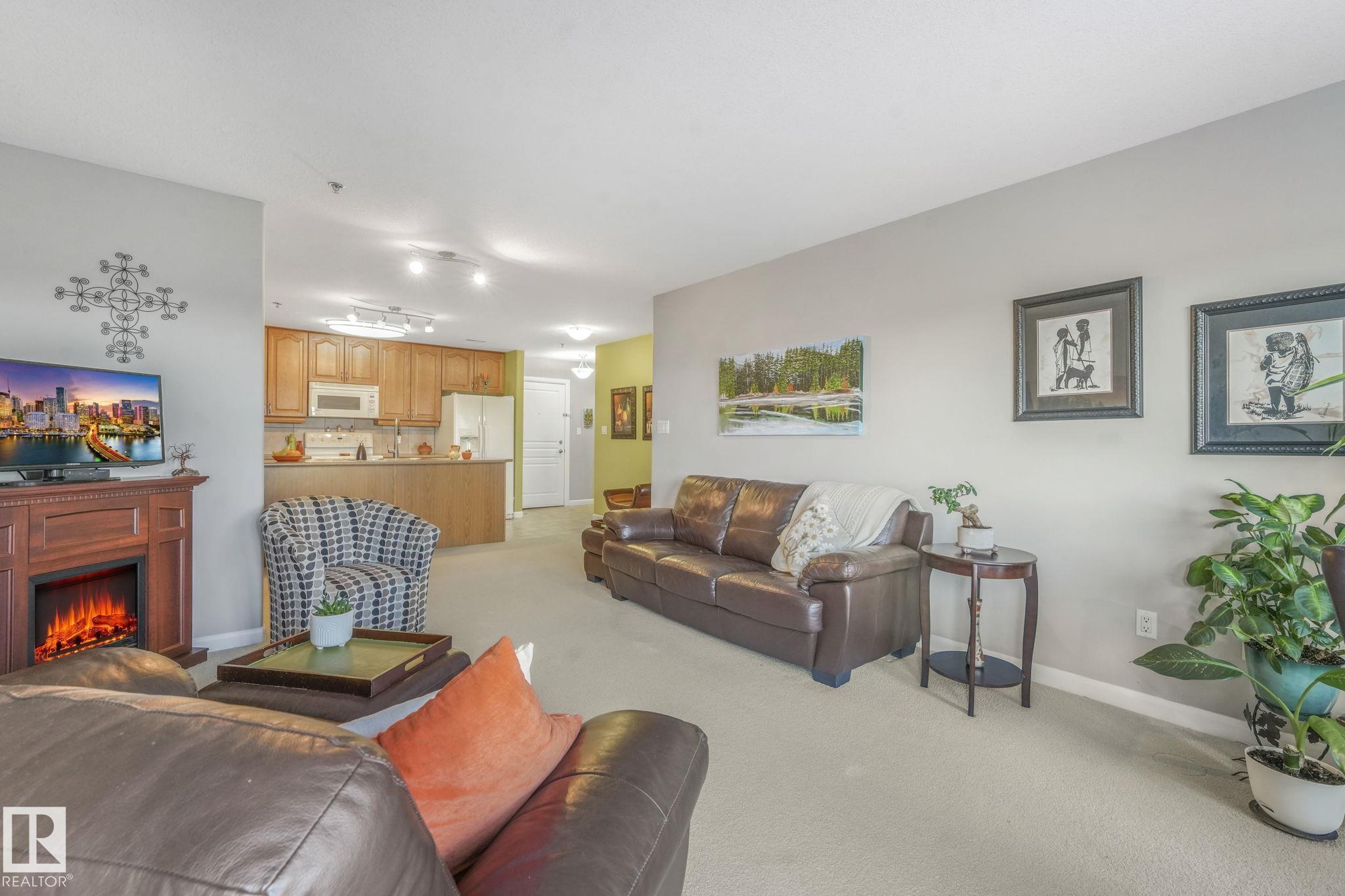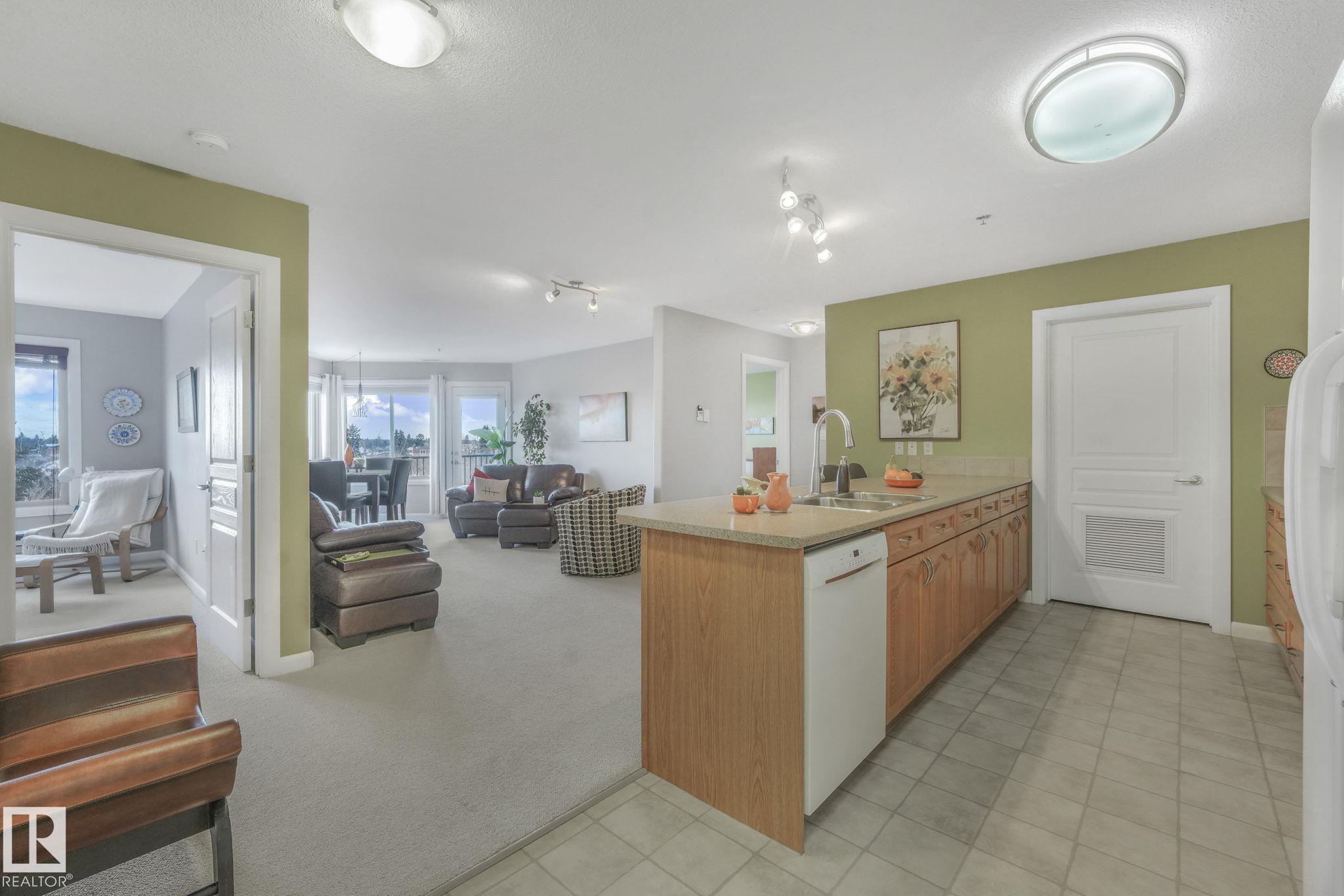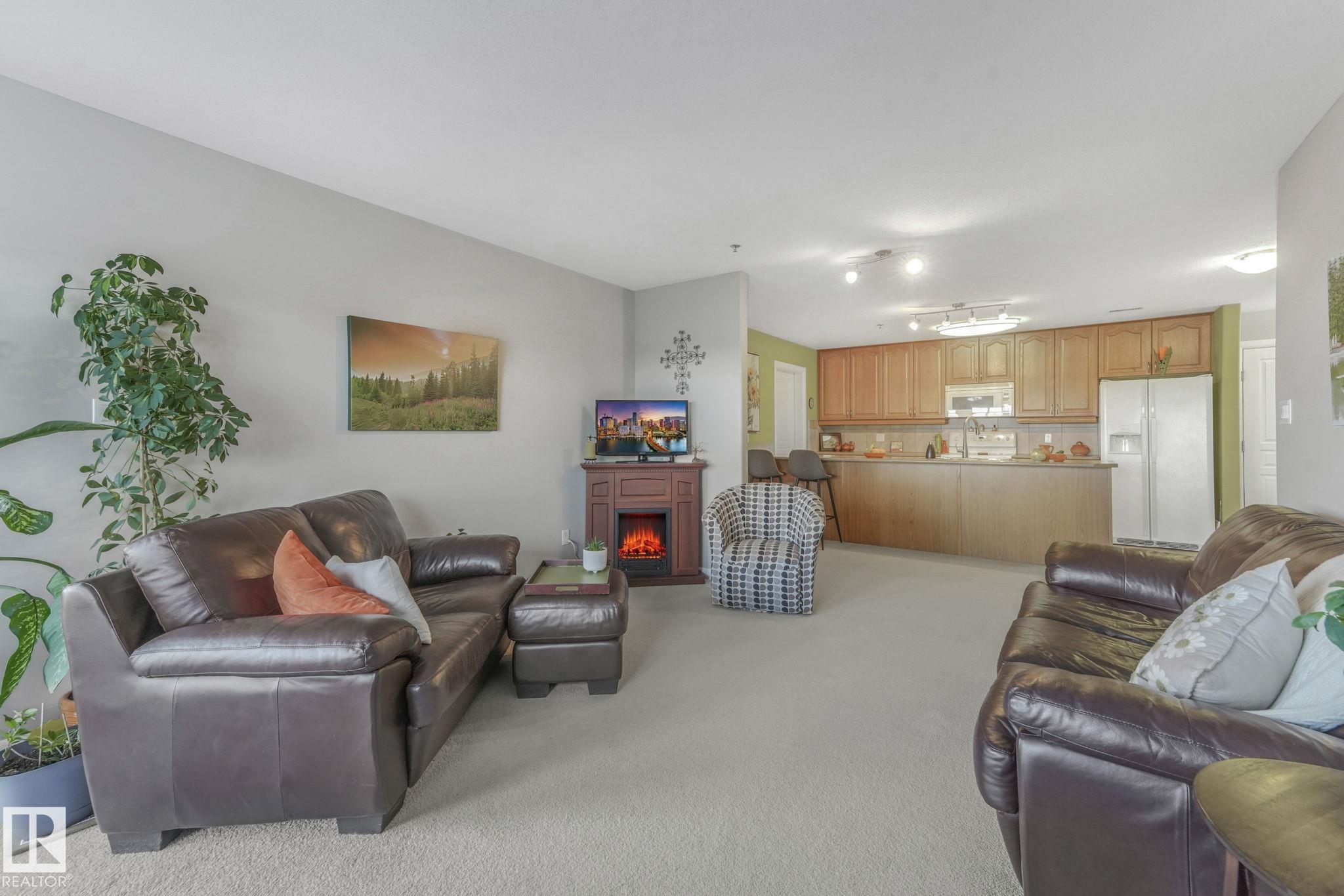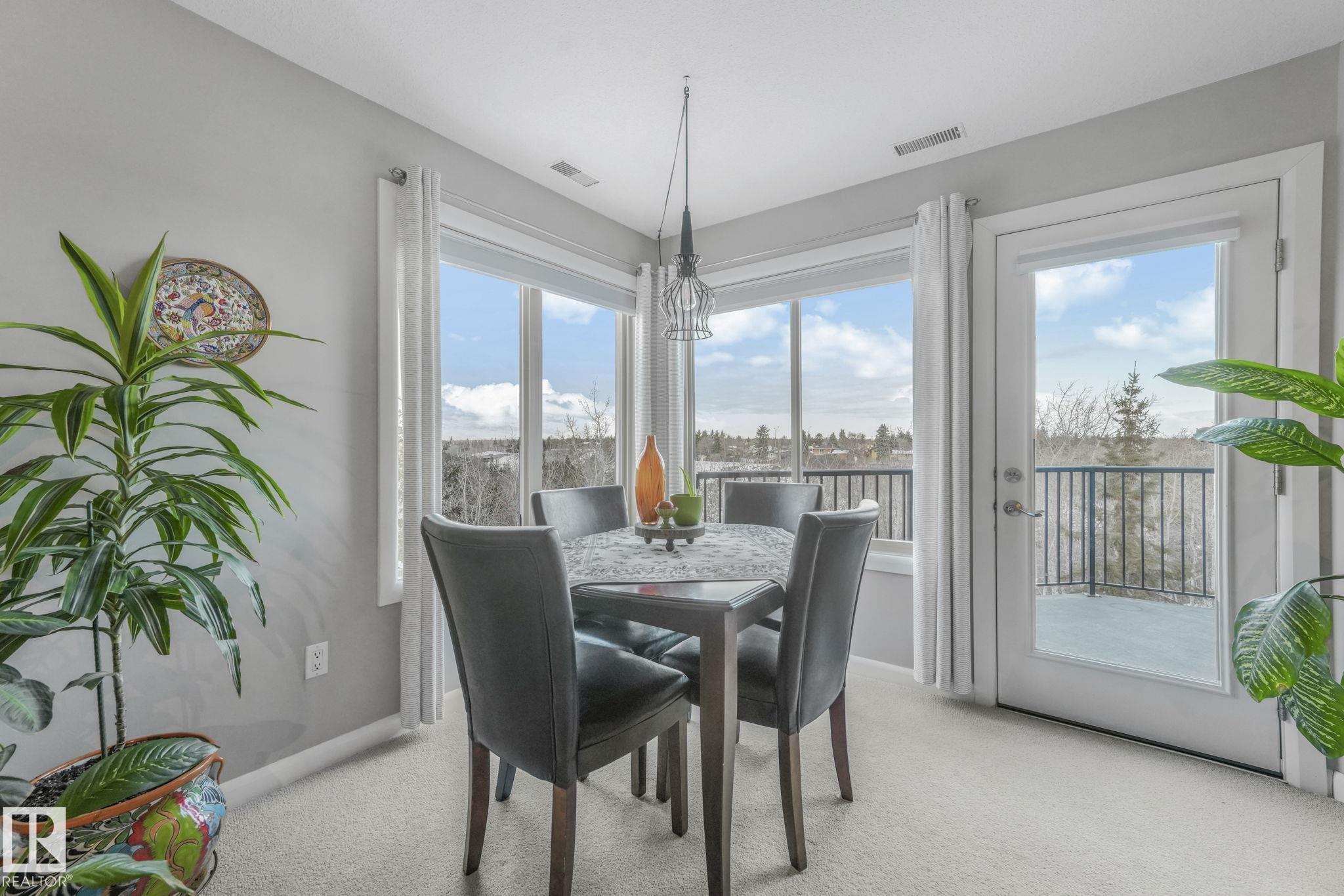 OVERLOOKING THE RAVINE! IMMACULATE TOP FLOOR UNIT. This modern 2 bedroom and 2 full bath, 18+ unit in the "Ridge At Hermitage" is immaculate! Features include: modern open concept kitchen with expansive breakfast bar, bright and warm ceiling height cabinets, spacious living room, large balcony, insuite laundry/storage, central elevators and underground parking stall with storage cage., Main bedroom has a walk-through closet and a 3pc ensuite. 2nd bedroom is next to a 4pc bath and has a custom murphy bed that converts to a desk and filing cabinet(5000. value). Bedrooms are on opposite ends of unit perfect for company/room mate. Parking is close to elevator. Extra features: A/C, visitor parking, car wash, Social and Exercise rooms. All utilities are included in the condo fees, except power PET FREINDLY with board approval close to off leash area. Extensive walking/biking trails, skiing and golf nearby. Quick access to all amenities and major routes!