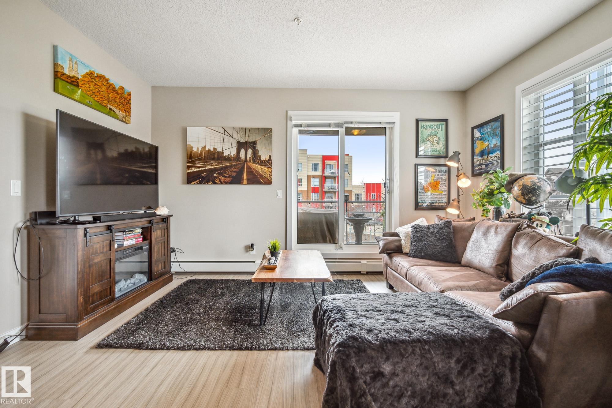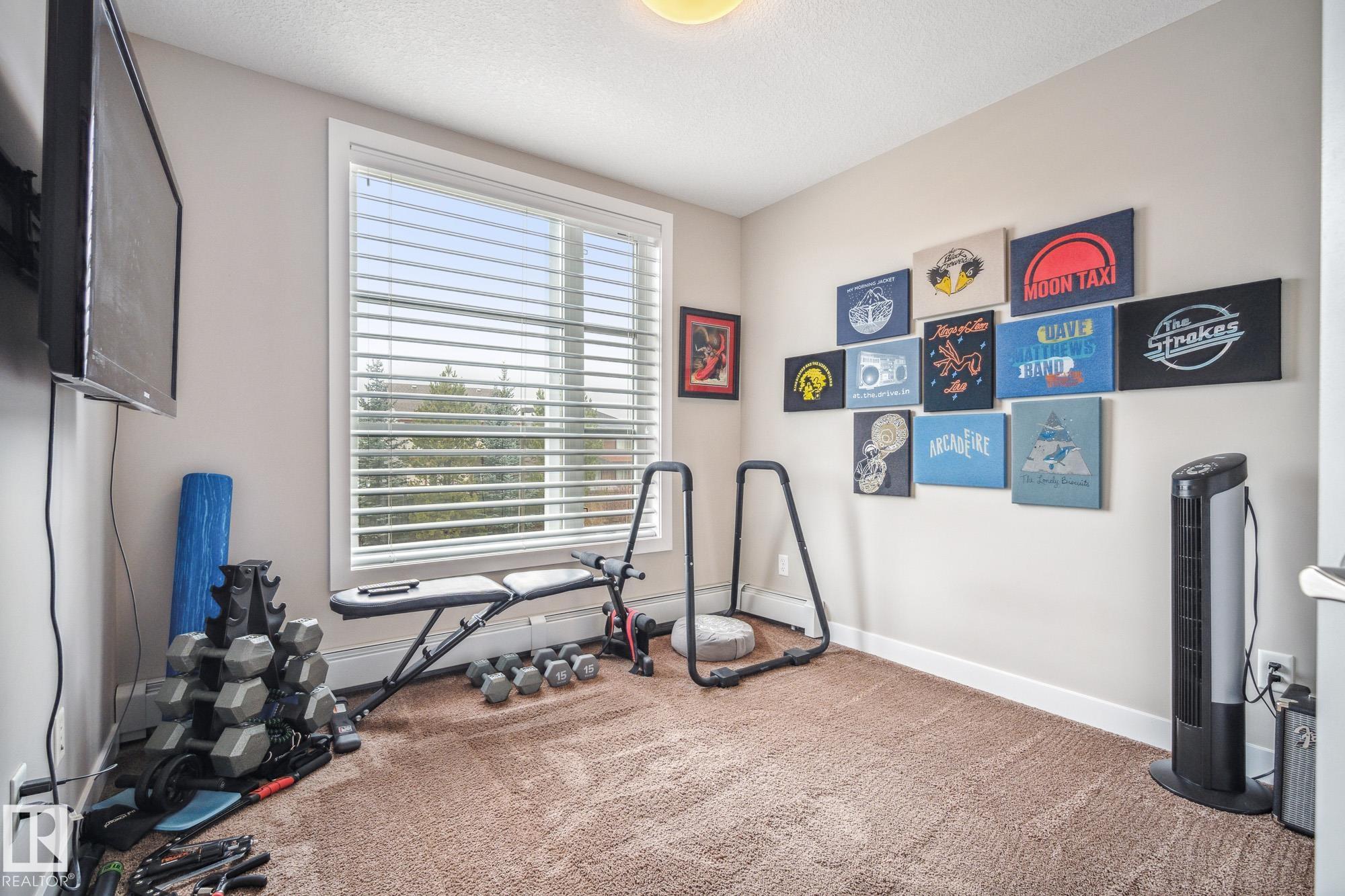 Step into comfort and convenience with this bright and airy 2-bedroom, 2-bathroom, and 2-parking-stall corner unit that offers style and functionality. Featuring 9' ceilings, large windows, and an open-concept layout with laminate flooring in the living space and soft carpet in the bedrooms. The kitchen features stainless steel appliances, ample storage, and a centre island. The primary bedroom boasts a 4-piece en-suite and walk-in closet, while the dedicated den, featuring a built-in desk and shelving, is ideal for working from home. Enjoy peaceful evenings on your west-facing patio or explore nearby ponds and trails. This pet-friendly building also offers a fitness room, guest suite, and TWO titled parking stalls. All this in a fantastic location with shops, restaurants in the nearby Currents of Windermere, and easy access to the Anthony Henday, Terwillegar Dr, and Whitemud. A perfect place to settle in, don?t miss your opportunity to make it home!