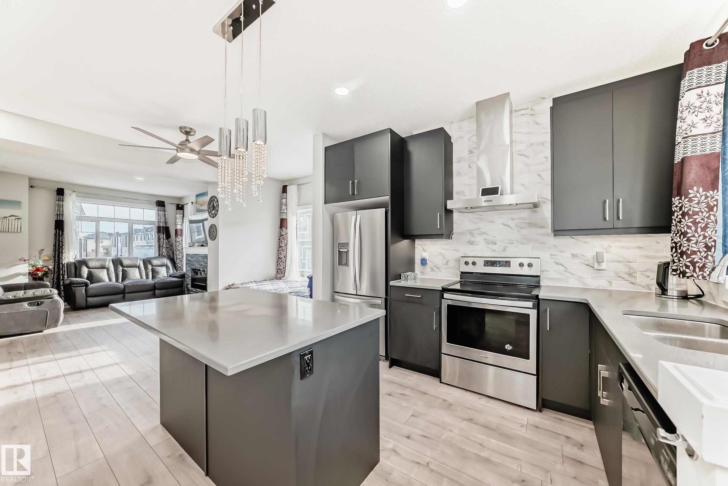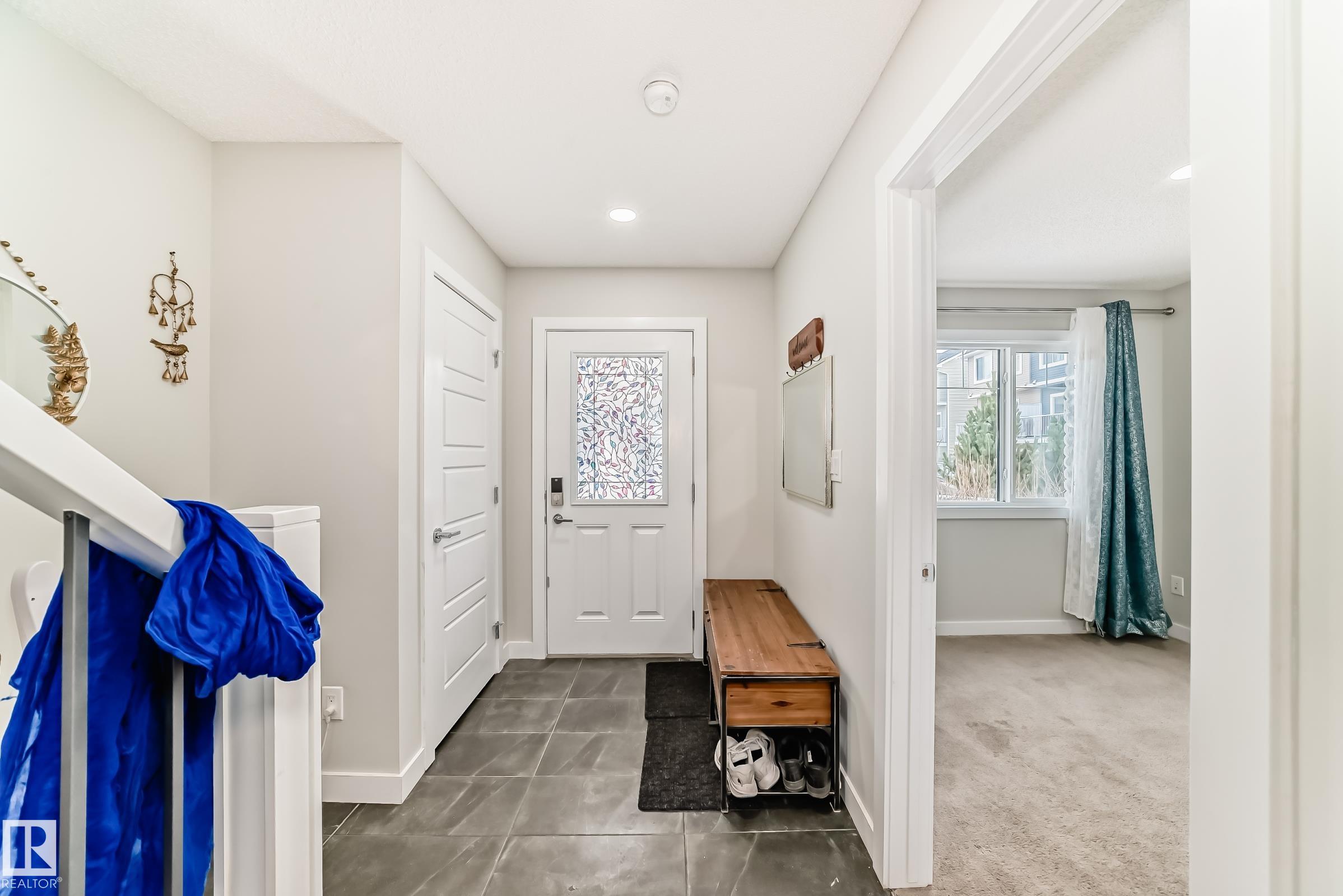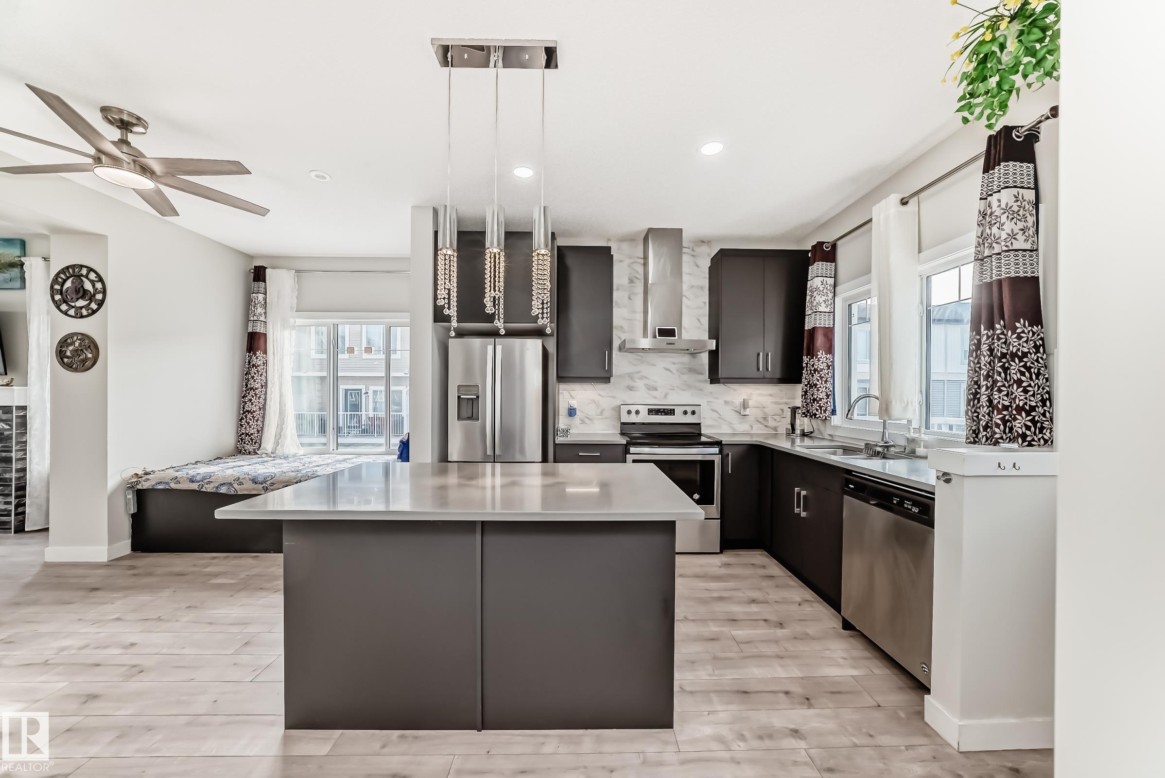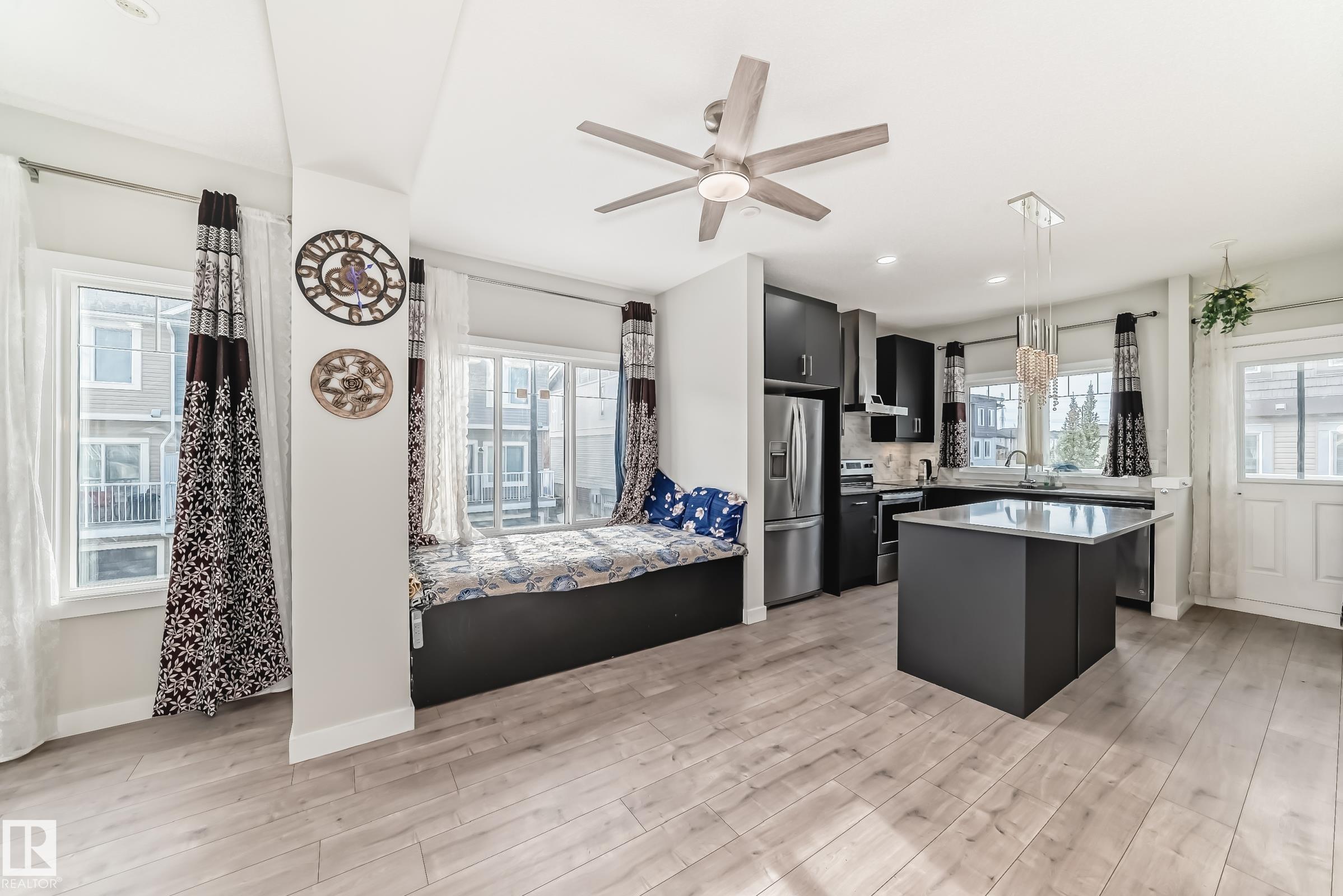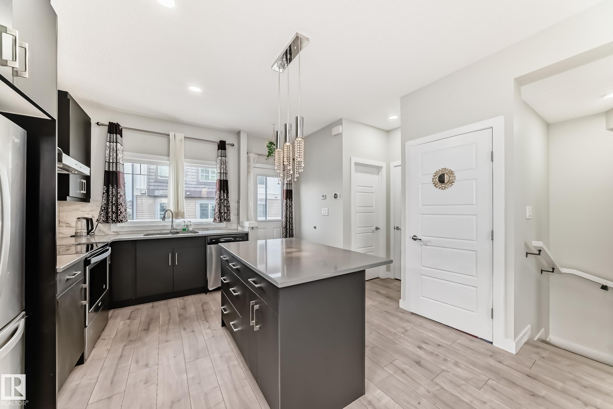 Former Showhome!! Welcome to this modern 3-storey corner townhome. This well-designed home offers 3 bedrooms and 2.5 bathrooms with an ideal layout for today?s lifestyle. The main floor features a versatile den/office, perfect for working from home, along with access to the heated attached garage. The second level showcases an open-concept living space with an upgraded kitchen featuring premium stone countertops, upgraded cabinetry, and ample prep space. The living room is highlighted by a stylish electric fireplace, and a convenient half bathroom completes this floor. Upstairs, the third level offers three bedrooms, including a spacious primary suite with a full ensuite, plus an additional full bathroom. Upgraded lighting and ceiling fans are found throughout the home. This smart-enabled townhome allows you to control lighting, fans, garage, and front door directly from your phone. Close to schools, parks, shopping, transit, and major roadways, this property offers excellent value and convenience.