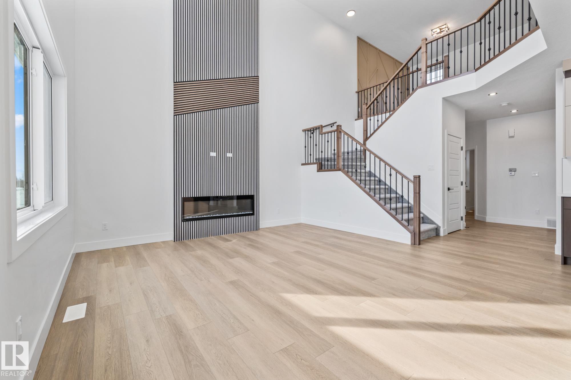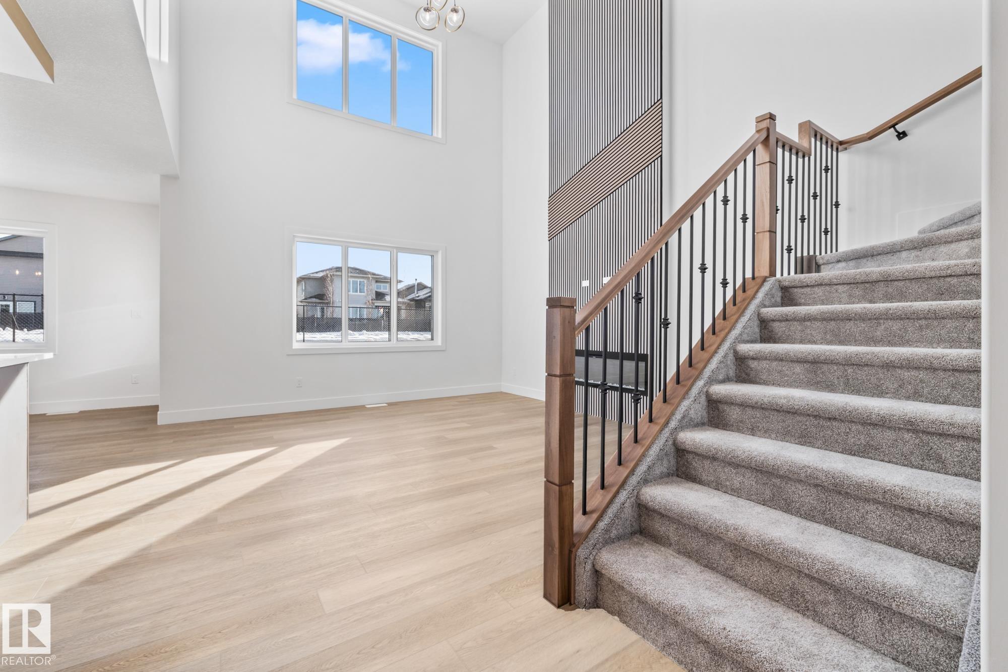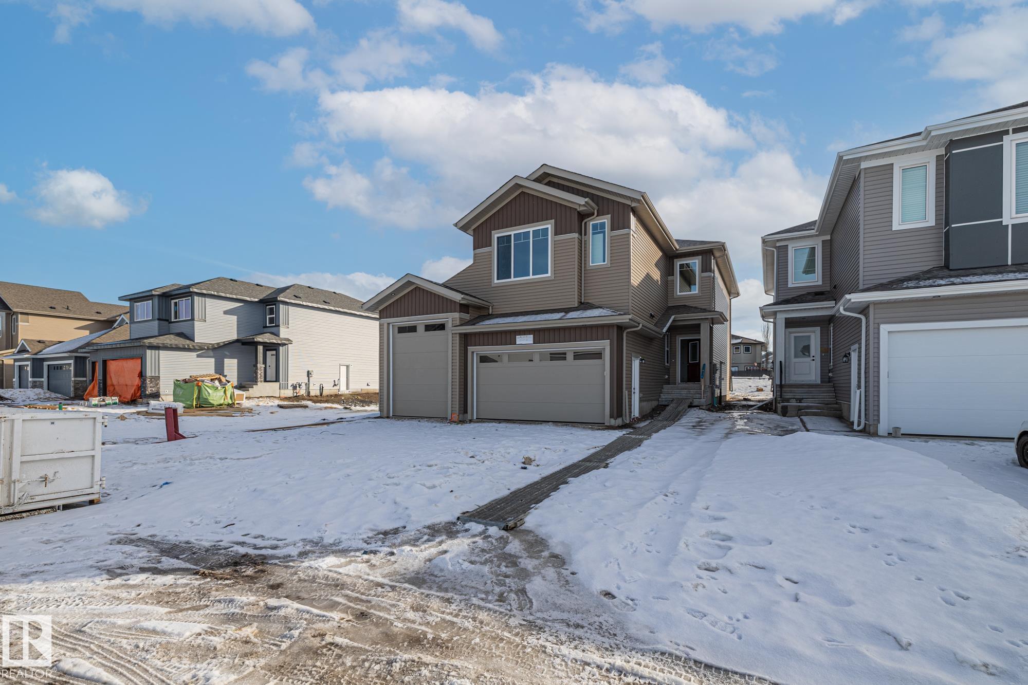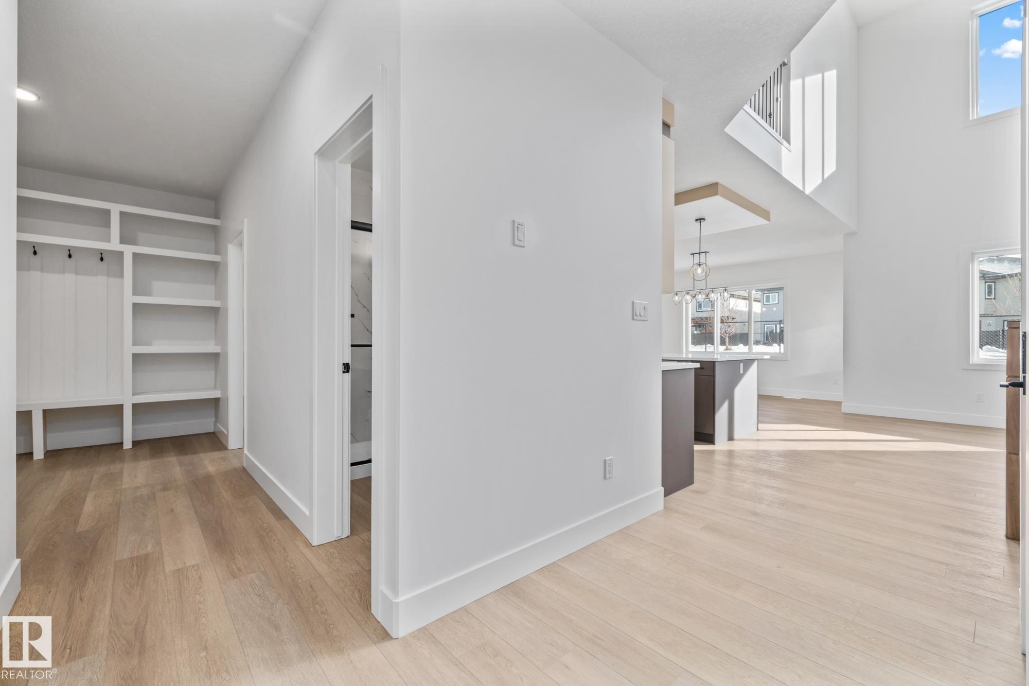 Welcome to a home where thoughtful design and everyday functionality come together beautifully. Enter directly from the garage into a well-appointed mudroom featuring built-in shelving for effortless organization. The walk-through pantry leads to an impressive chef?s kitchen with ample cabinetry and counter space, perfectly positioned to overlook the dining area and the breathtaking living room with 18? ceilings and a stylish mantel complete with an electric fireplace. To the left on the upper level offers a spacious bonus room, two bedrooms, a shared bathroom with convenient access from both the bonus room and one bedroom, and an upstairs laundry area. Tucked away on the opposite side is the serene primary suite, complete with a private ensuite and a large closet featuring custom built-in shelving. Adding to the appeal is a side entrance and an attached triple-car garage with an RV bay. Located in Fort Saskatchewan, this property is just minutes from many amenities!