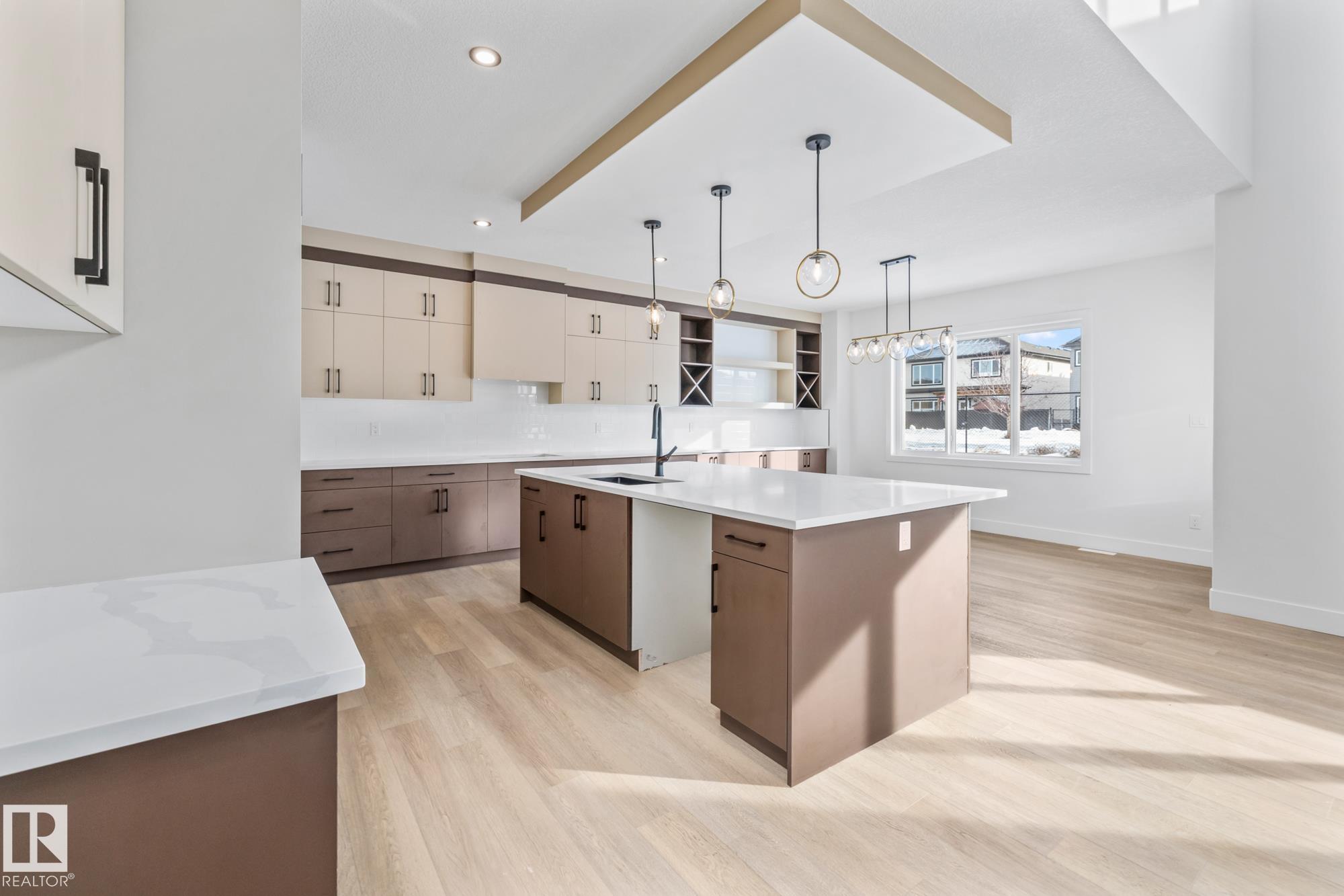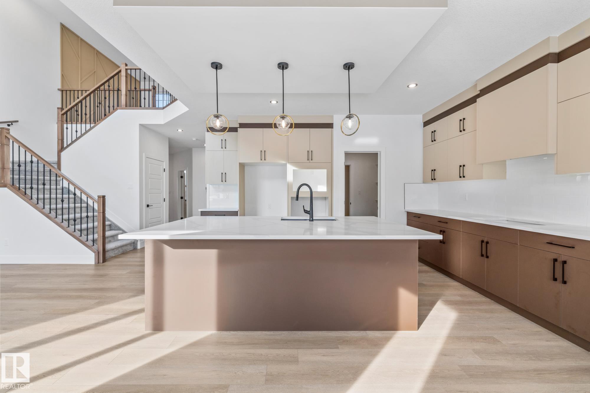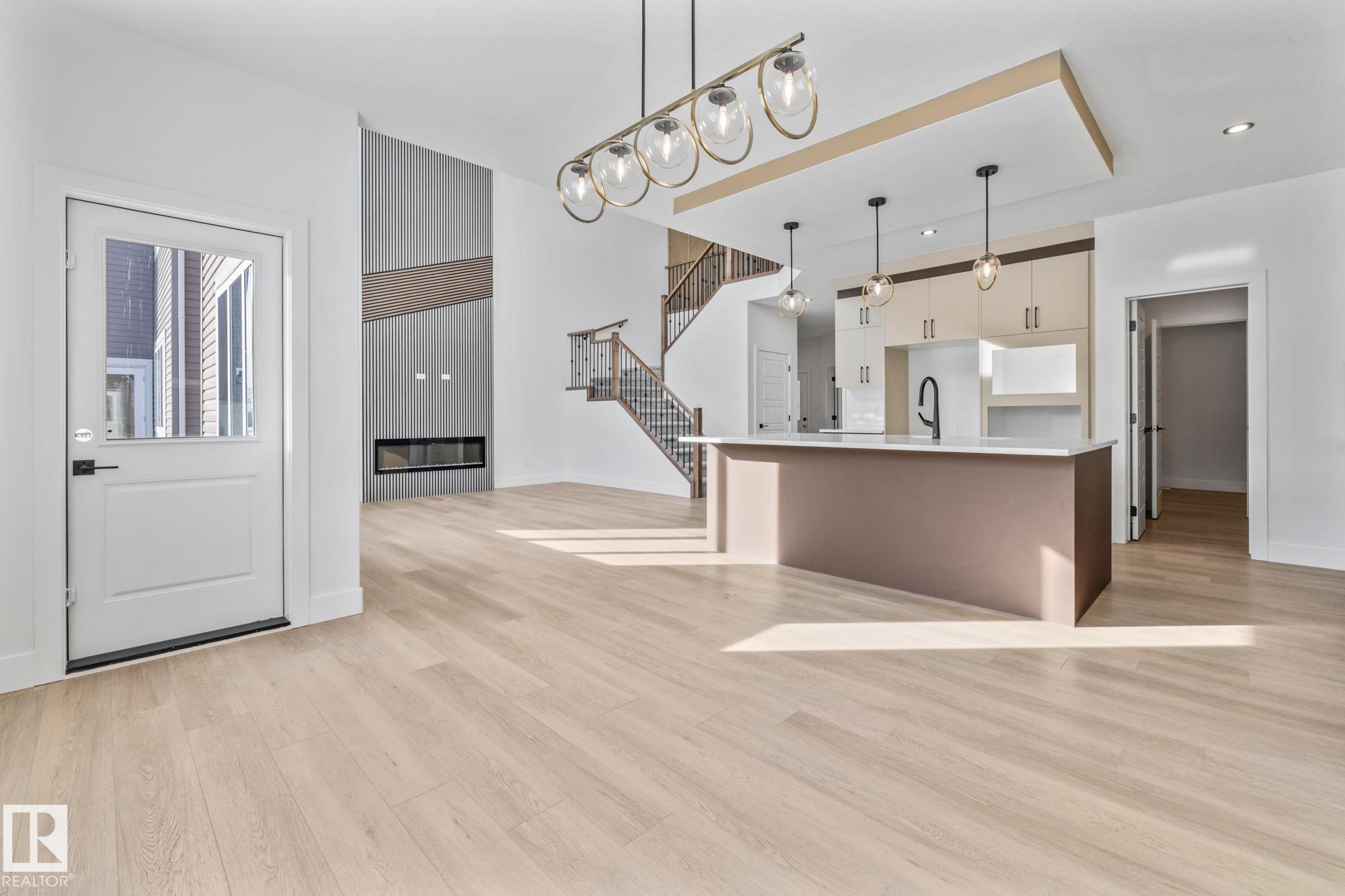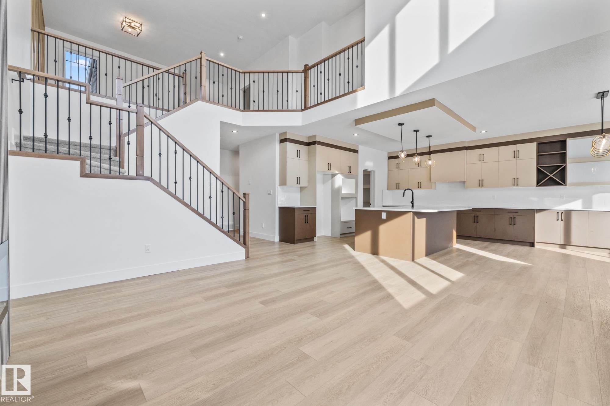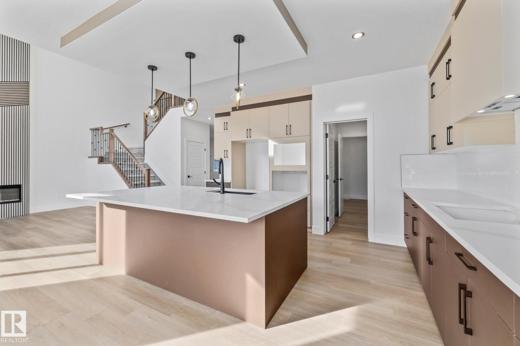 Welcome to a home where thoughtful design and everyday functionality come together beautifully. Enter directly from the garage into a well-appointed mudroom featuring built-in shelving for effortless organization. The walk-through pantry leads to an impressive chef?s kitchen with ample cabinetry and counter space, perfectly positioned to overlook the dining area and the breathtaking living room with 18? ceilings and a stylish mantel complete with an electric fireplace. To the left on the upper level offers a spacious bonus room, two bedrooms, a shared bathroom with convenient access from both the bonus room and one bedroom, and an upstairs laundry area. Tucked away on the opposite side is the serene primary suite, complete with a private ensuite and a large closet featuring custom built-in shelving. Adding to the appeal is a side entrance and an attached triple-car garage with an RV bay. Located in Fort Saskatchewan, this property is just minutes from many amenities!