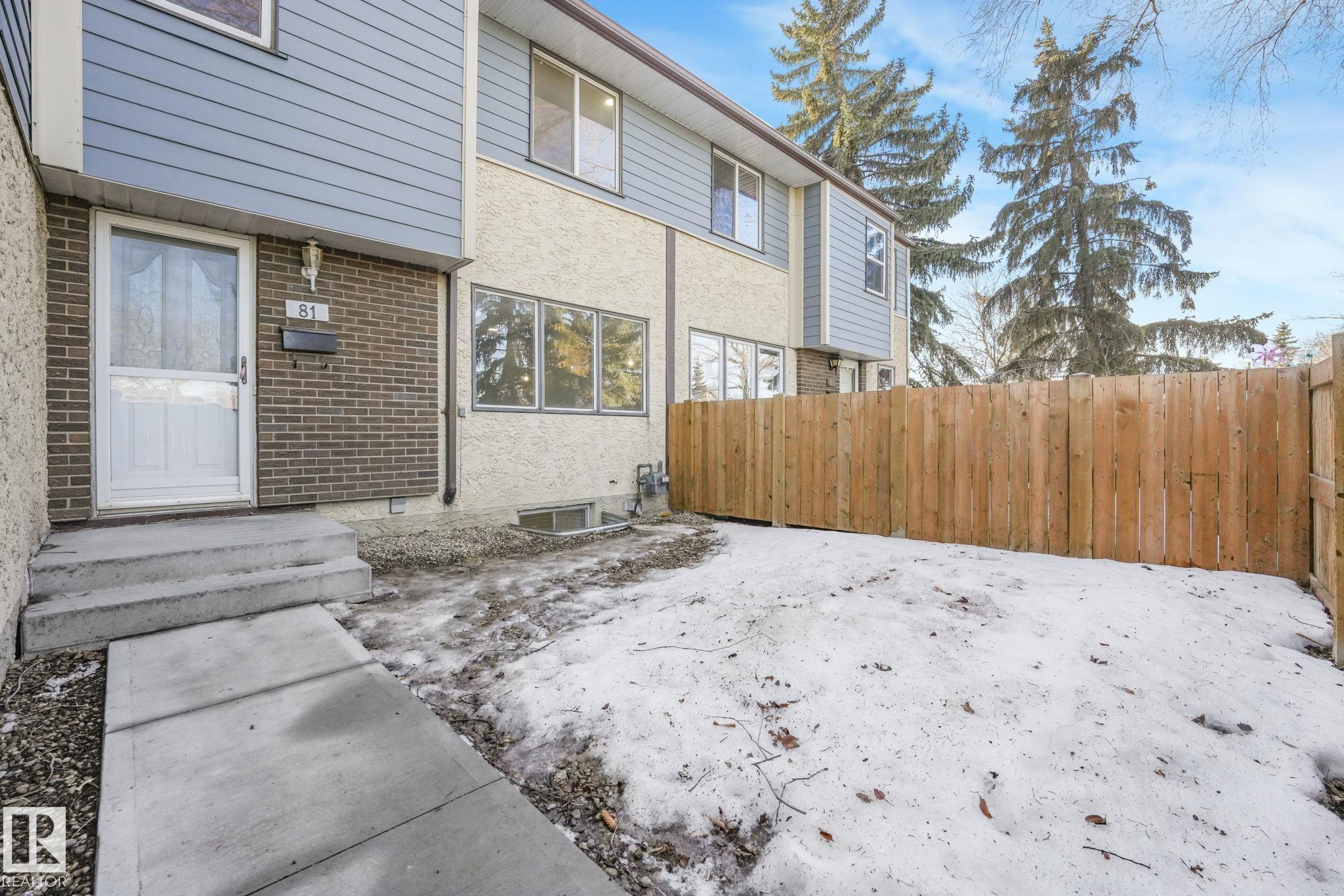 Welcome to 81 Willowdale Place NW. Fully renovated top to bottom with a brand-new kitchen and updated bathrooms. This move-in-ready 3-bedroom, 1.5-bath townhome offers a bright, functional layout with a spacious living room and dining area, perfect for everyday living. Upstairs you?ll find three generous bedrooms and a beautifully refreshed full bath, plus an updated powder room on the main. A rare bonus: two private fenced outdoor spaces, one at the front entry and a second yard/patio area accessed through the kitchen patio door, ideal for BBQs, kids, pets, or relaxing outdoors. Located in desirable West Edmonton near Callingwood shopping, the YMCA, schools, parks, and transit, with quick access to Whitemud Drive and Anthony Henday. A fantastic opportunity for first-time buyers, families, or investors!