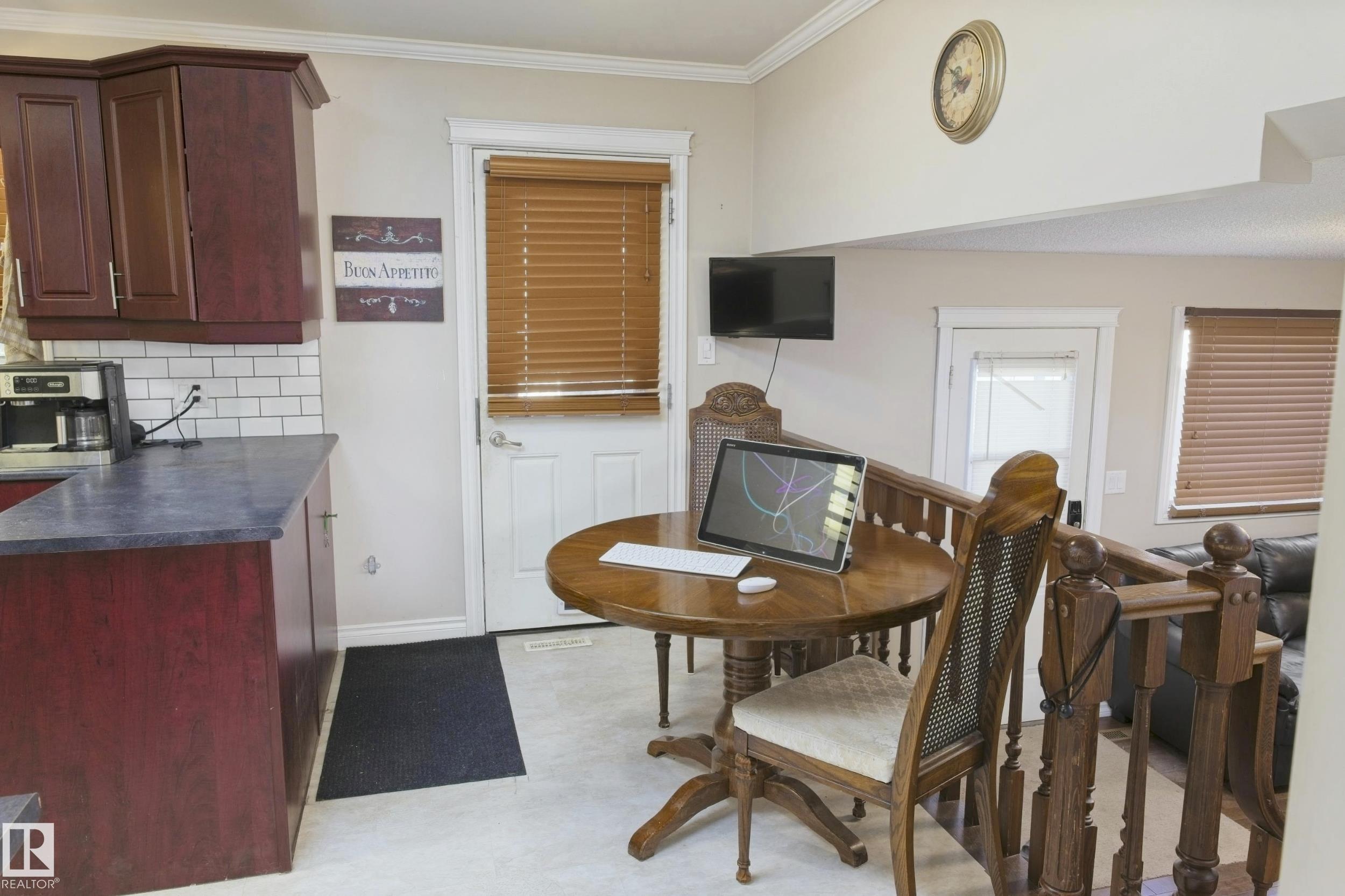 Very private edge of town property overlooking open field along private one way street on the East end of Barrhead. 2 owner 4 level split home & property w/ excellent outdoor space, double car garage & extra off street parking spaces. 3 bedrooms w/ flexible 4th bedroom/ office option plus 3.5 baths (includes gorgeous master ensuite). Very family oriented/active living space w/ good sized rooms throughout including 2 nice family rooms, formal dining, breakfast nook, updated kitchen cabinetry featuring moveable island, office, basement recreation, good storage space & more. Extensive renovations including high efficiency furnace, kitchen cabinets, shingles, flooring, paints, lighting, amazing covered high vault outdoor patio plus more. Fenced & landscaped yard. Garage w/new oh door, work space & plant starter greenhouse. Surreal atmosphere, private location, amazing home w/ much more to see in person