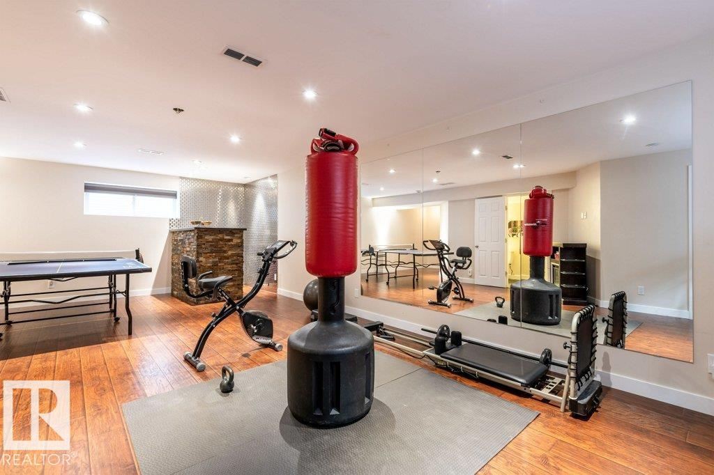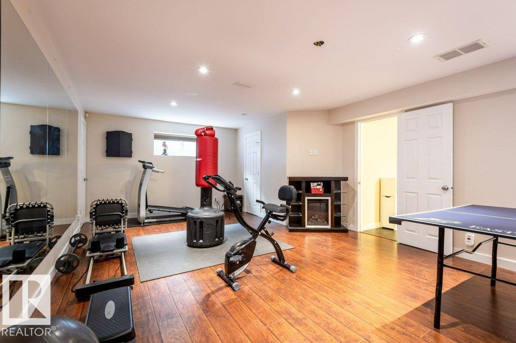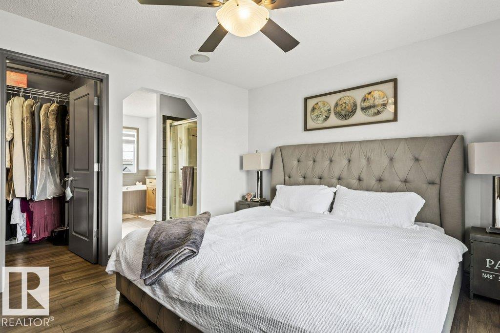 Welcome home to this beautiful FORMER SHOW HOME, located in the highly desirable community of McConachie, just steps away from schools, parks, shopping & amenities. This home offers 3 spacious bedrooms, an inviting bonus room with corner gas fireplace, and a fully finished basement complete with bar, gym, and bathroom. The chef-inspired kitchen features granite counters, premium appliances, and a bright nook overlooking the backyard. Enjoy year-round comfort with central air conditioning and a built-in speaker system throughout. Your private retreat awaits in the luxurious primary suite, boasting a spa-like ensuite with a relaxing soaker tub and oversized 4 ft shower. Outdoors, the home shines with a heated, insulated double garage, beautifully landscaped yard with fruit trees, firepit, and a rear deck with BBQ gas line, ideal for summer gatherings. This stunning property truly has it all, don?t miss your chance to call it home!