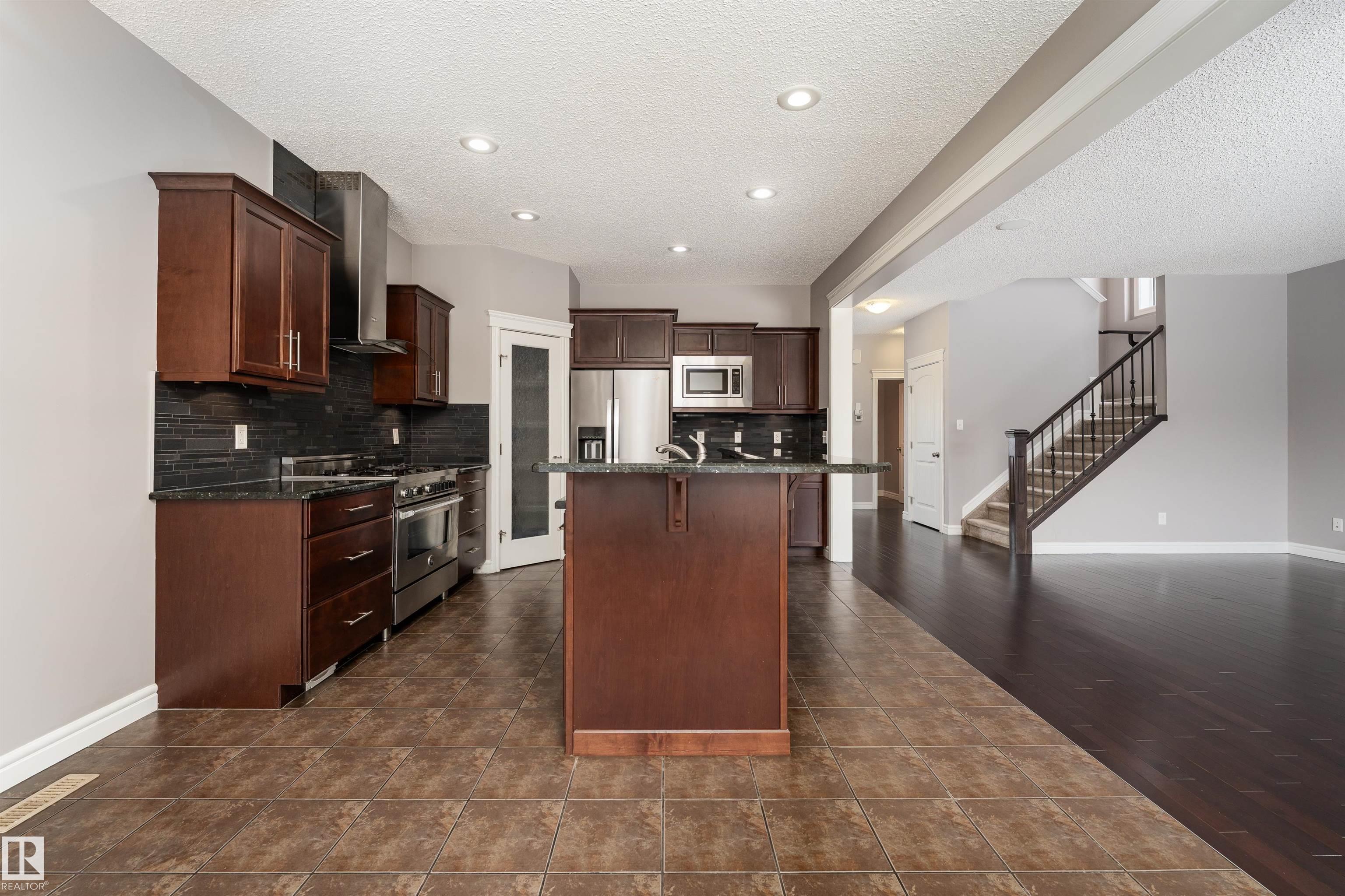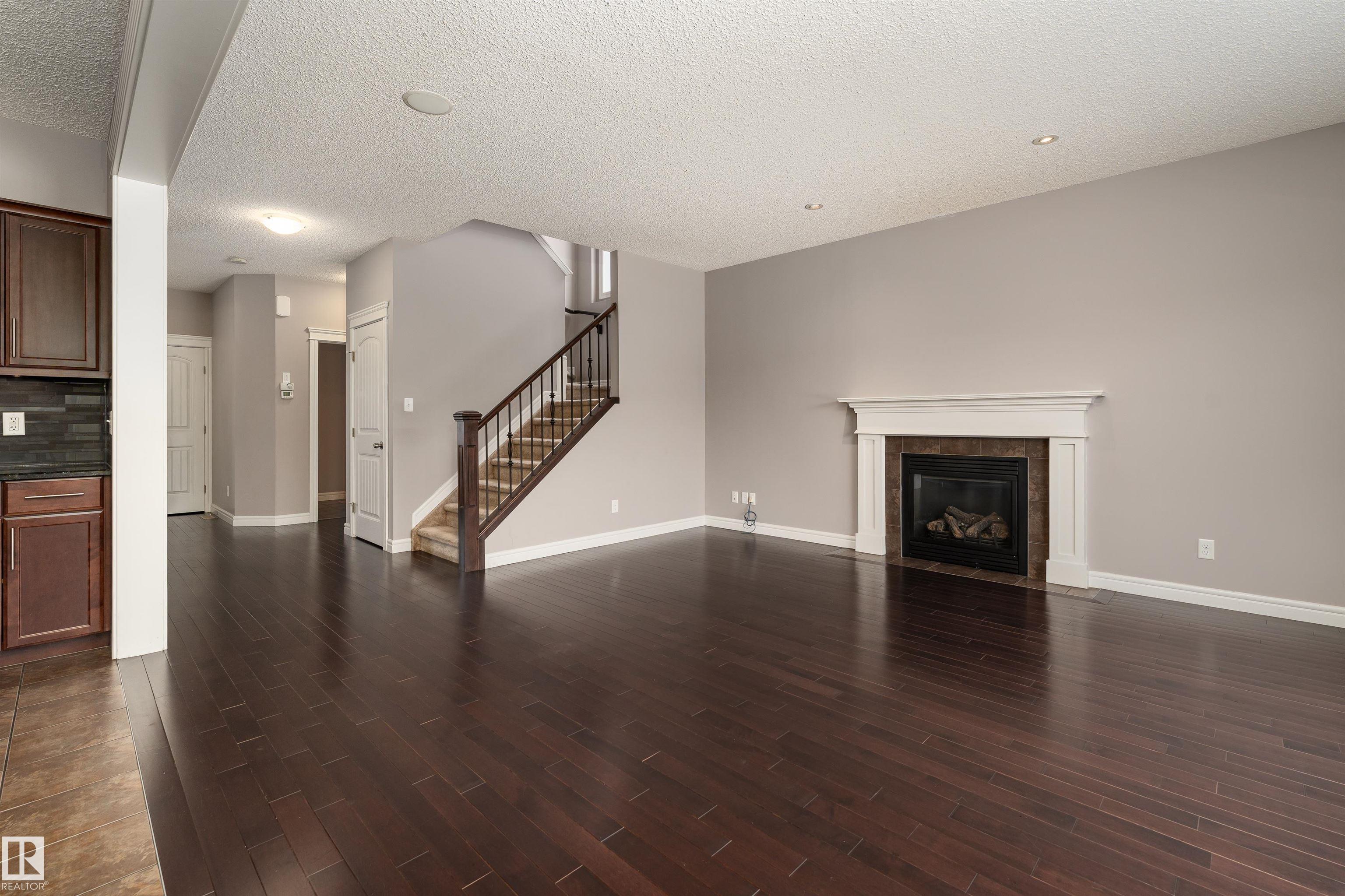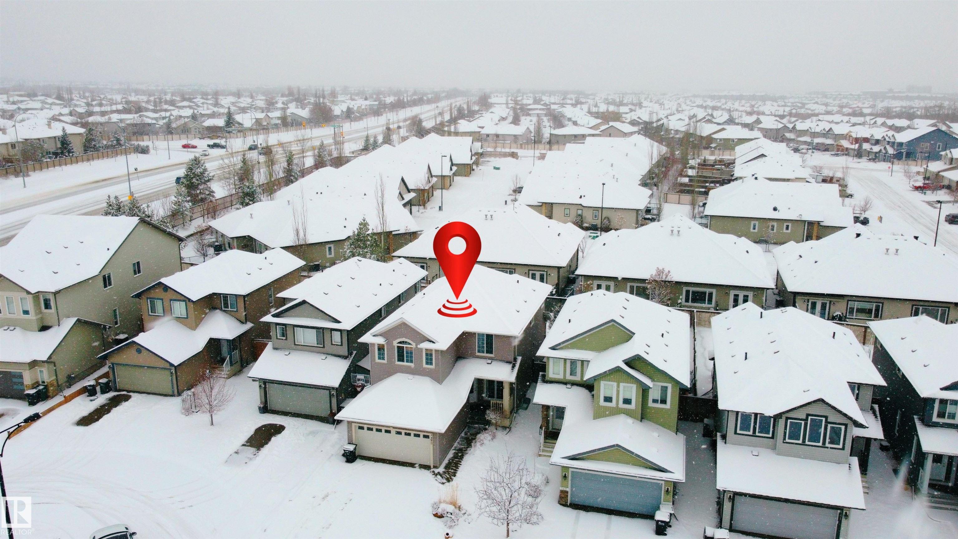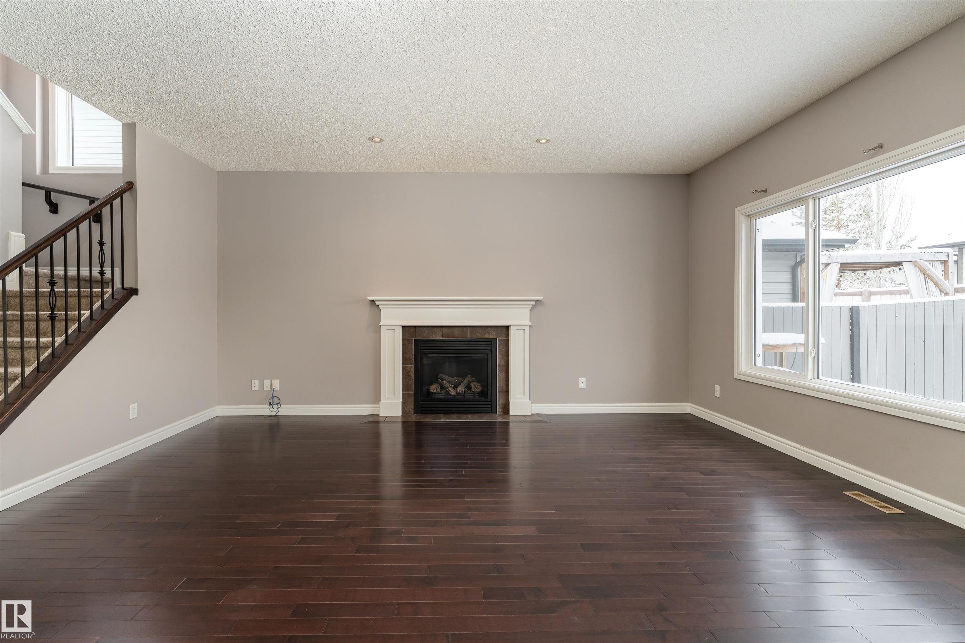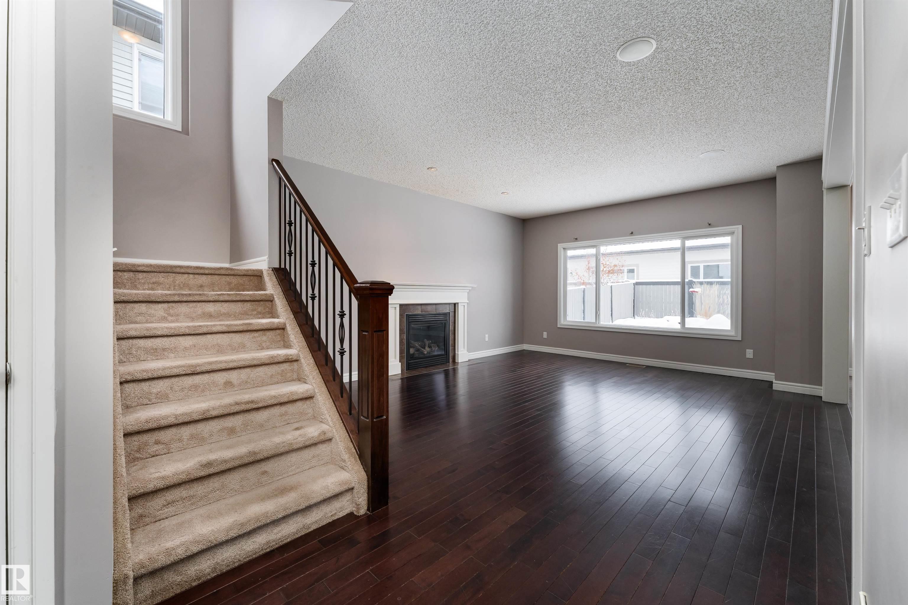 Nestled on a quiet cul-de-sac, this southeast-facing Summerwood home offers over 2,100sqft of bright, open living with style, comfort, and family functionality at every turn. The main floor features rich hardwood, a cozy gas fireplace, & a spacious living area filled with natural light. The kitchen impresses with granite countertops, stainless steel appliances, gas stove, and a corner pantry, flowing seamlessly into the dining area. A versatile open flex area adds room for a den or extra dining, alongside main floor laundry and a convenient 2-piece bath. Upstairs, enjoy a large family room with surround sound, three bedrooms including a generous primary with ensuite, plus an additional full bathroom. The fully fenced backyard boasts a composite deck and a water feature, complemented by another water feature at the front. Recent updates: hot water tank, water softener, garage door, and A/C for year-round comfort. Bright, spacious, and perfectly located?this home has it all. Some photos are virtually staged
