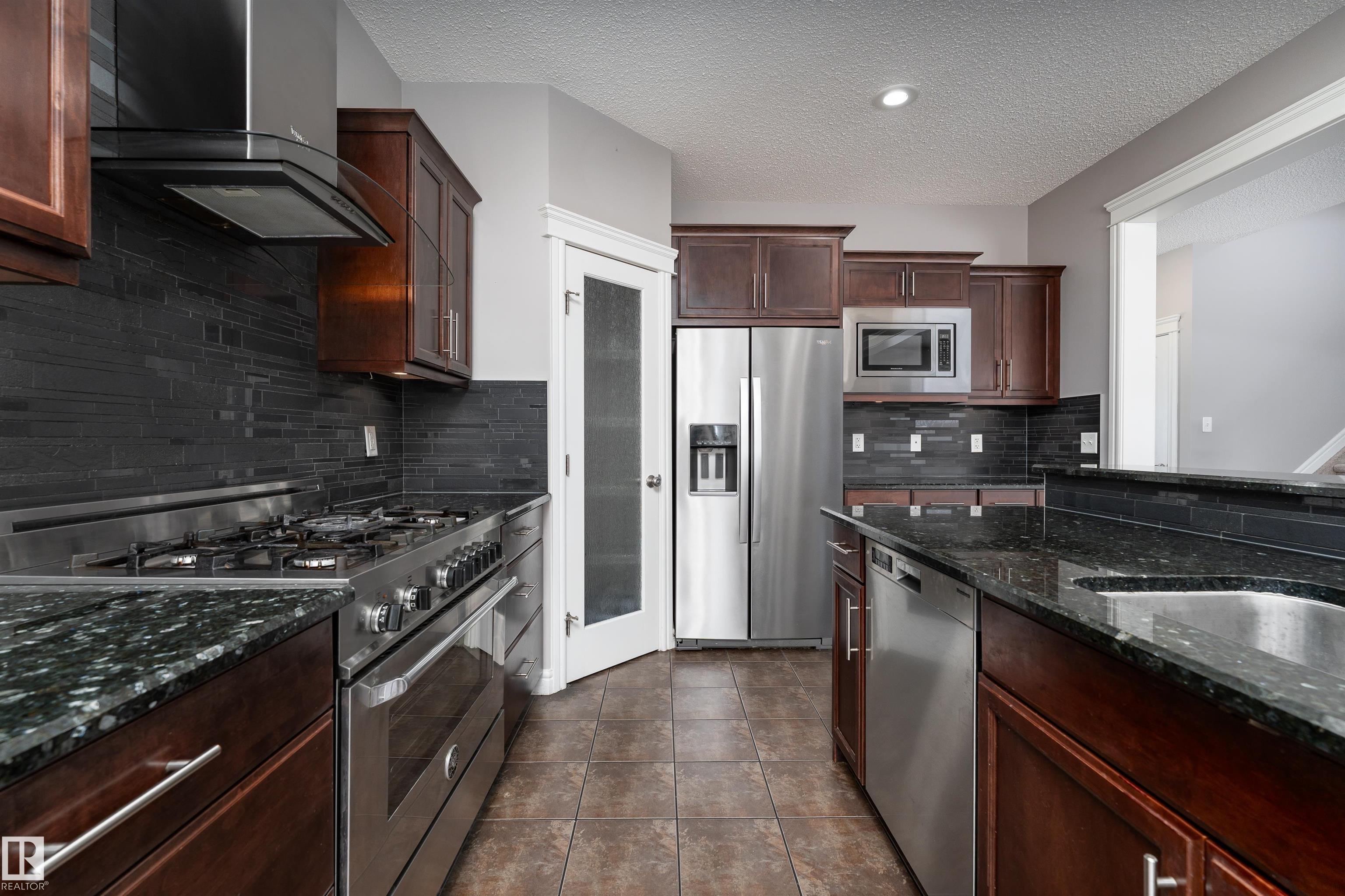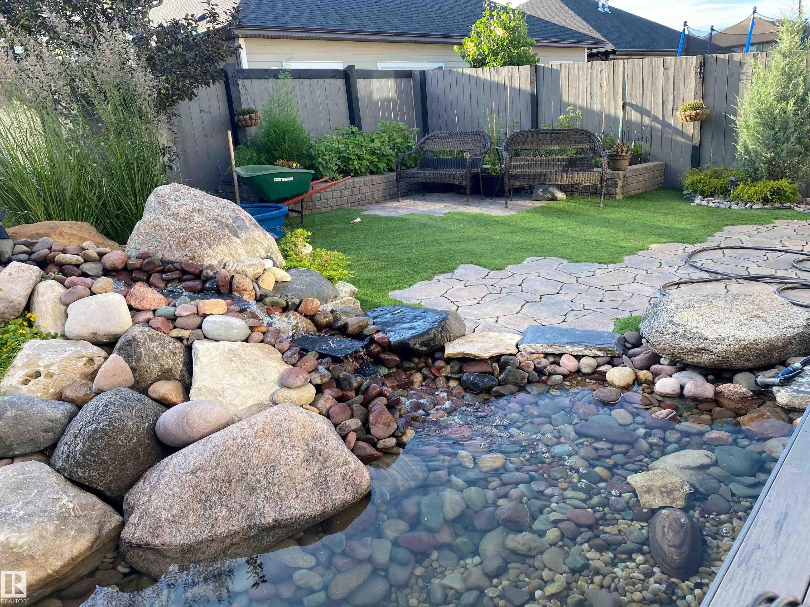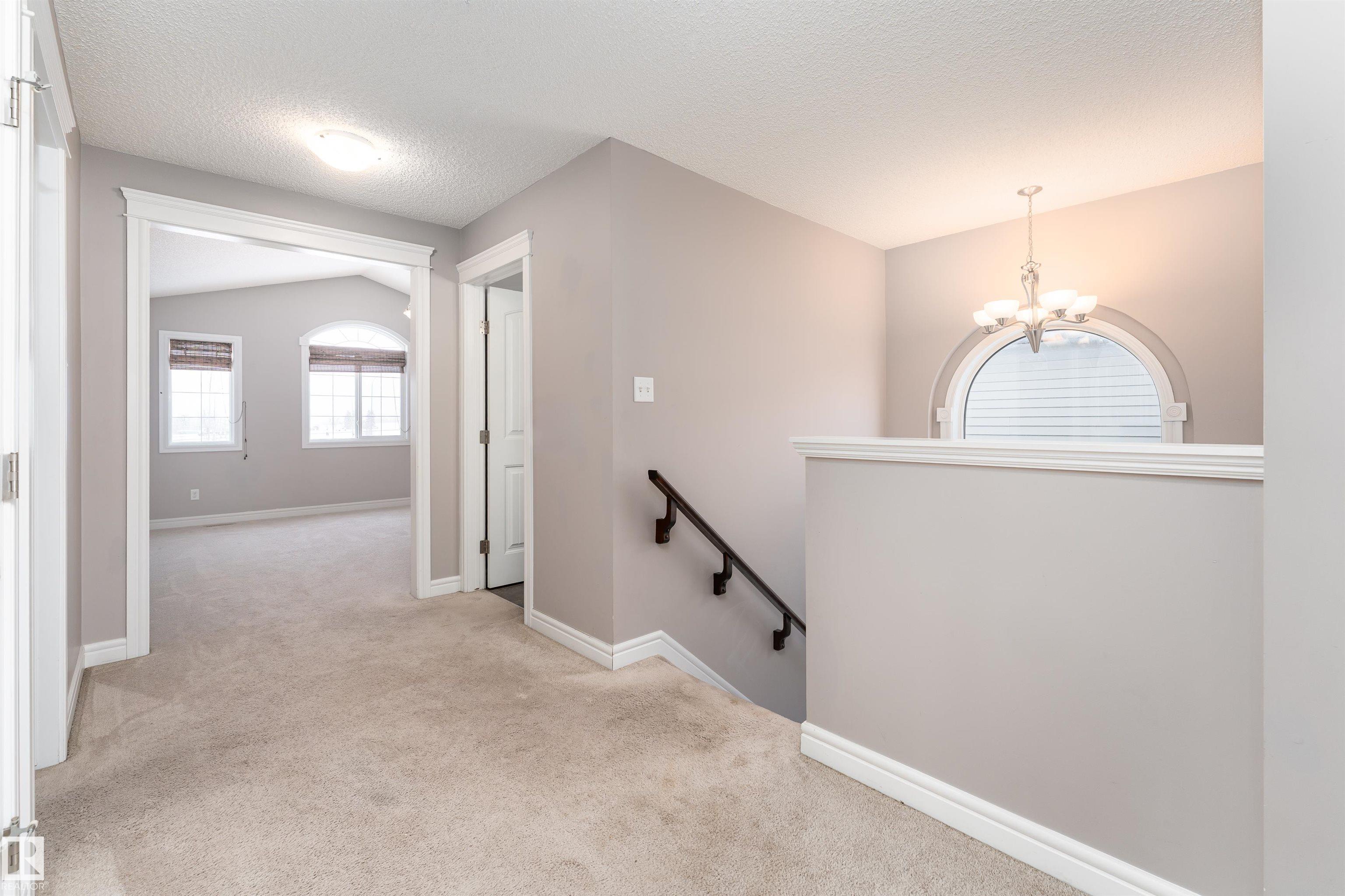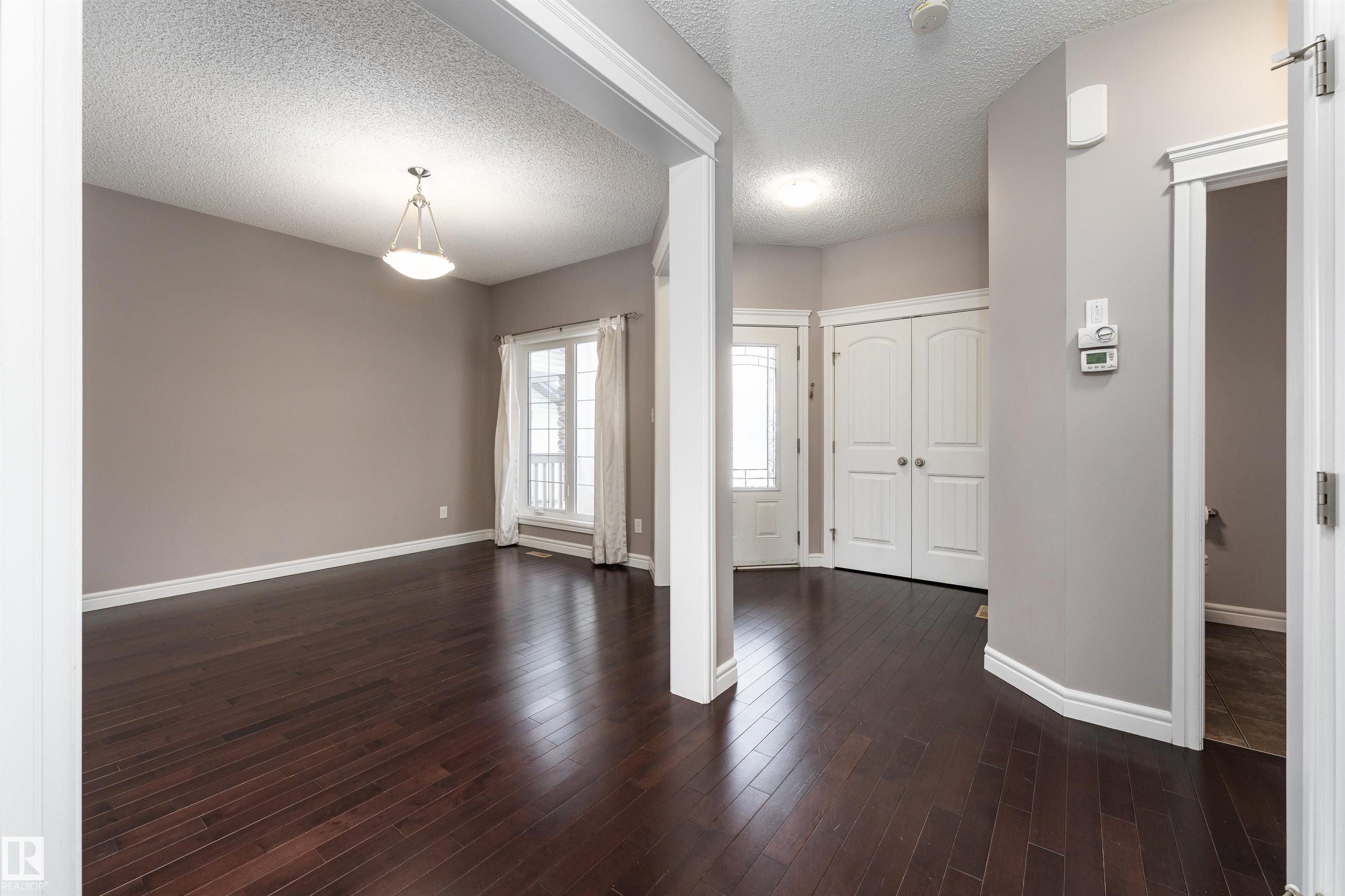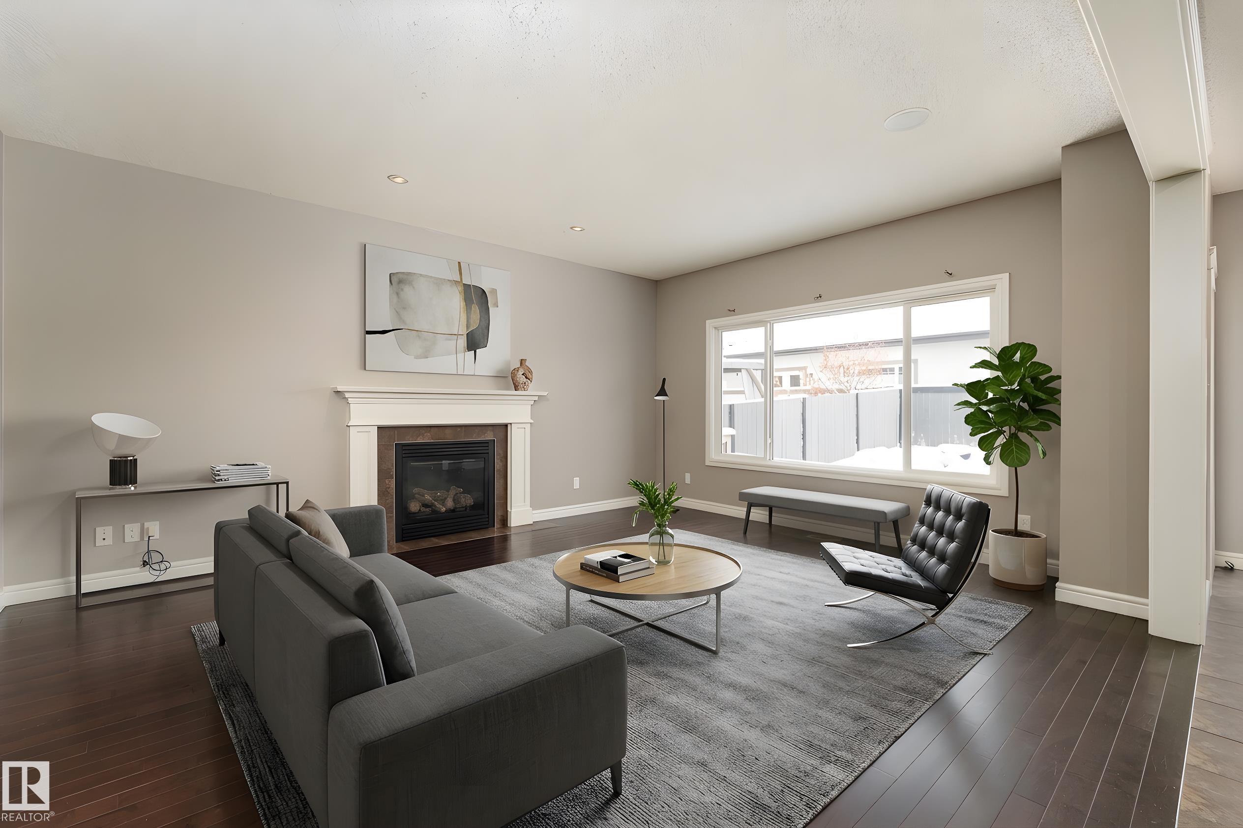 Nestled on a quiet cul-de-sac, this southeast-facing Summerwood home offers over 2,100sqft of bright, open living with style, comfort, and family functionality at every turn. The main floor features rich hardwood, a cozy gas fireplace, & a spacious living area filled with natural light. The kitchen impresses with granite countertops, stainless steel appliances, gas stove, and a corner pantry, flowing seamlessly into the dining area. A versatile open flex area adds room for a den or extra dining, alongside main floor laundry and a convenient 2-piece bath. Upstairs, enjoy a large family room with surround sound, three bedrooms including a generous primary with ensuite, plus an additional full bathroom. The fully fenced backyard boasts a composite deck and a water feature, complemented by another water feature at the front. Recent updates: hot water tank, water softener, garage door, and A/C for year-round comfort. Bright, spacious, and perfectly located?this home has it all. Some photos are virtually staged