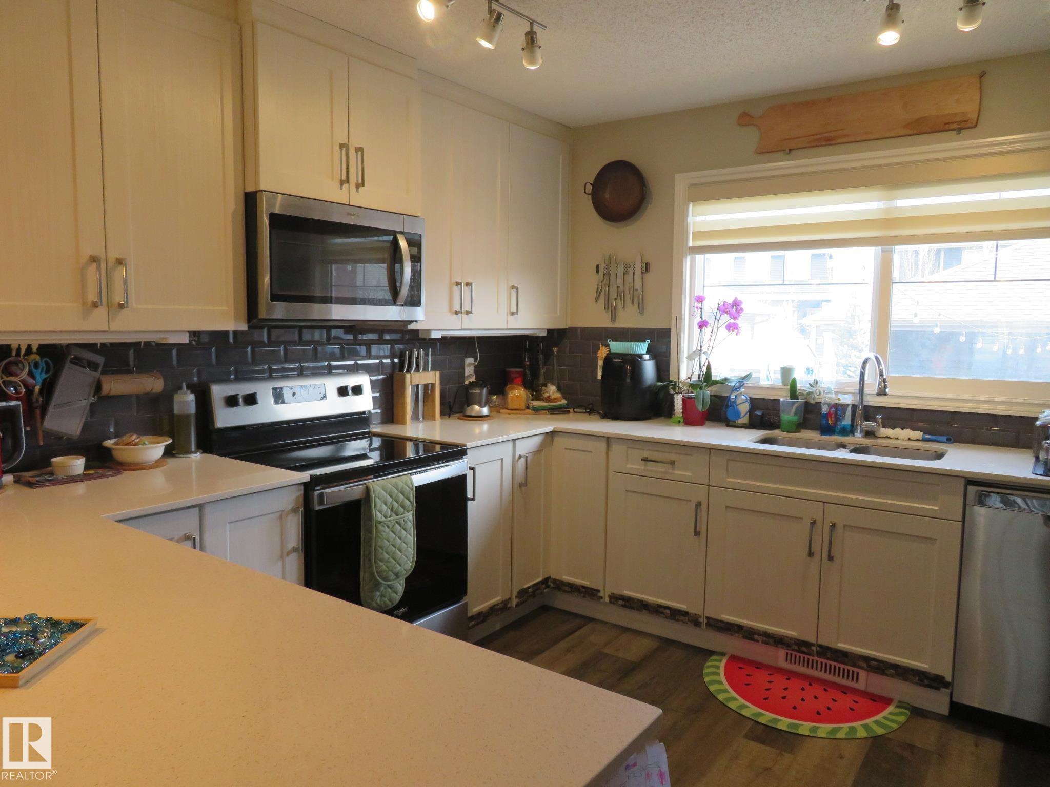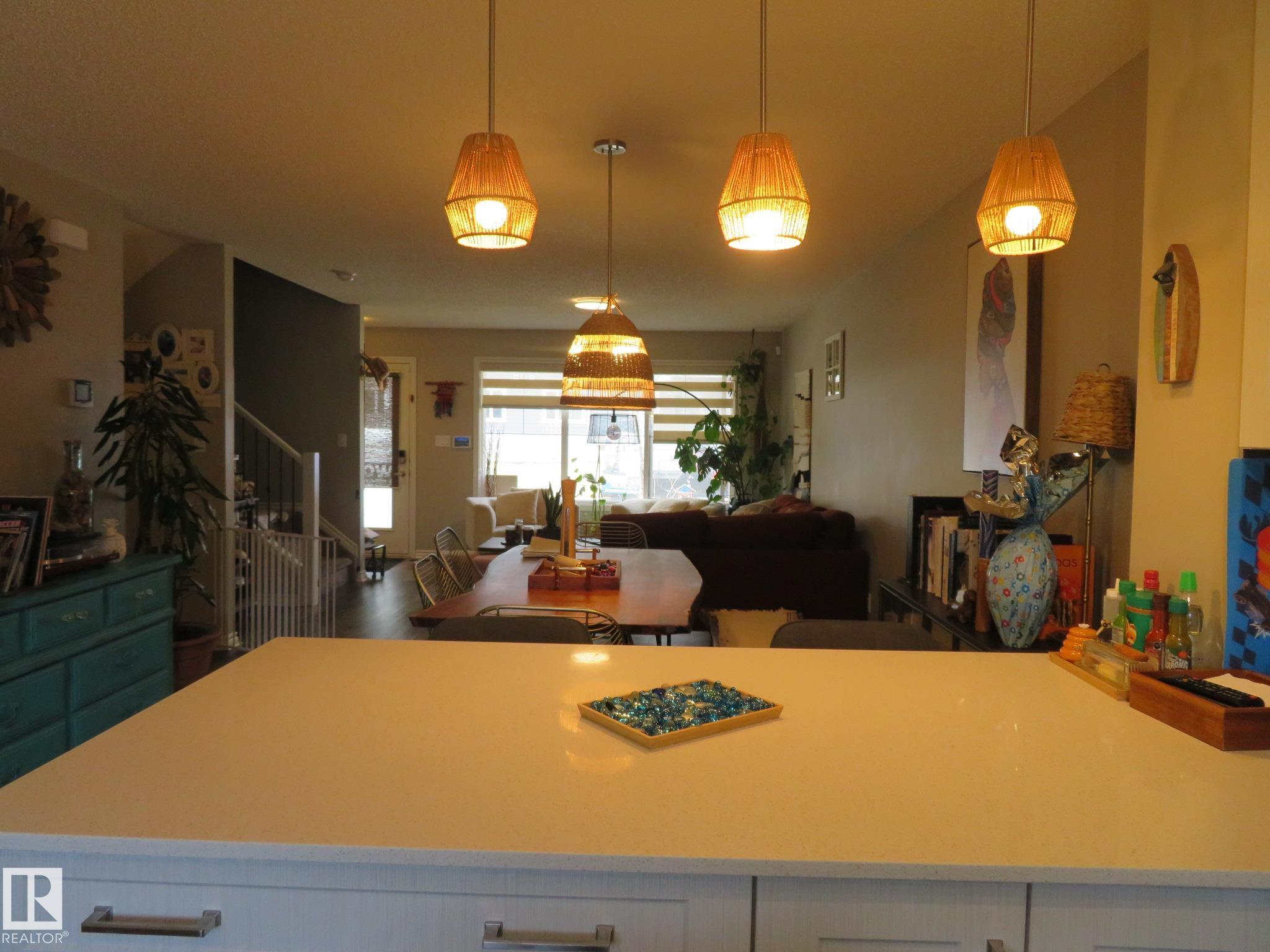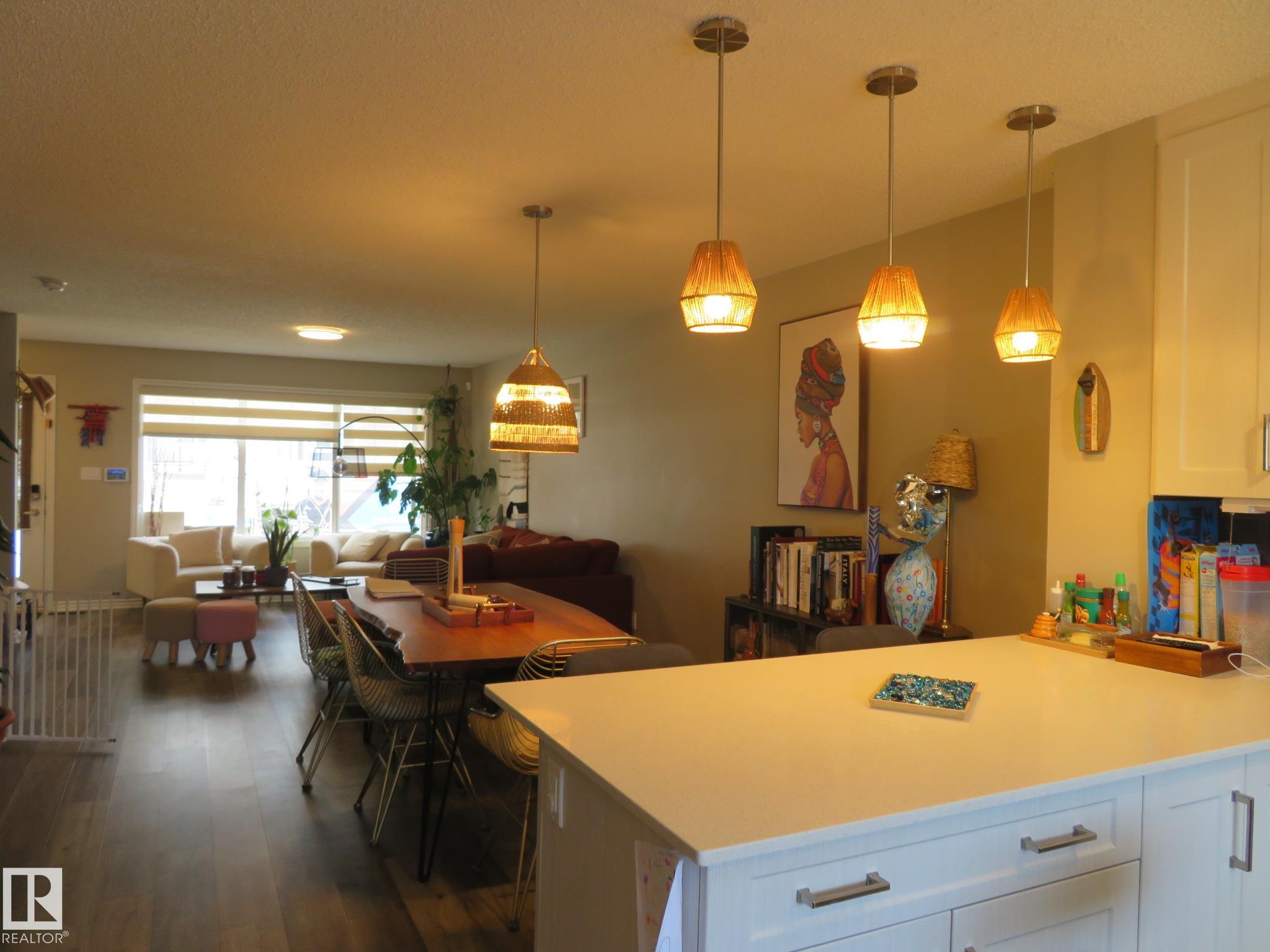 Welcome to this beautifully upgraded house, which is located in the community of Griesbach. End unit, built by Coventry Homes on a good-sized lot. This 3 bedrooms, 3.5 bathrooms, w/ fully finished basement home offers over 2,100 sq. ft. of total living space. Featuring loads of upgrades including designer lighting, quartz counters & quality vinyl plank flooring. The spacious open concept floor plan has lots of big windows, a bright living room & dining area open to the chef?s kitchen, which has a massive island, elegant European style cabinetry & high-end SS appliances. The 2-pc powder room is located by the mudroom, which leads to a private large deck. The upper level has 3 generously sized bedrooms, 4-pc bathroom & laundry. The primary has a walk-in closet & 4-pc ensuite. The developed basement offers lots more of living space featuring a family room, 4-pc bath & plenty of storages. The exterior has fantastic curb appeal, a traditional front porch, fenced yard, AC & a double detached garage.
