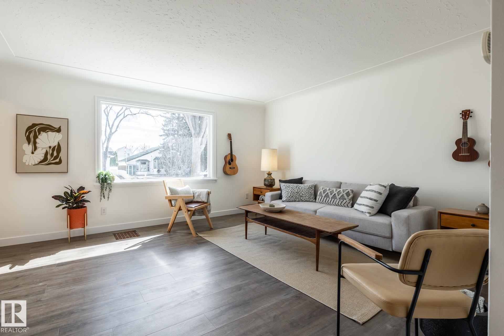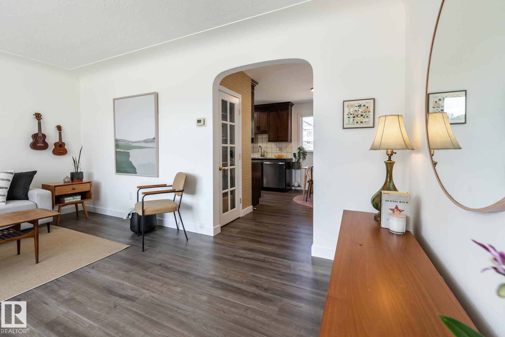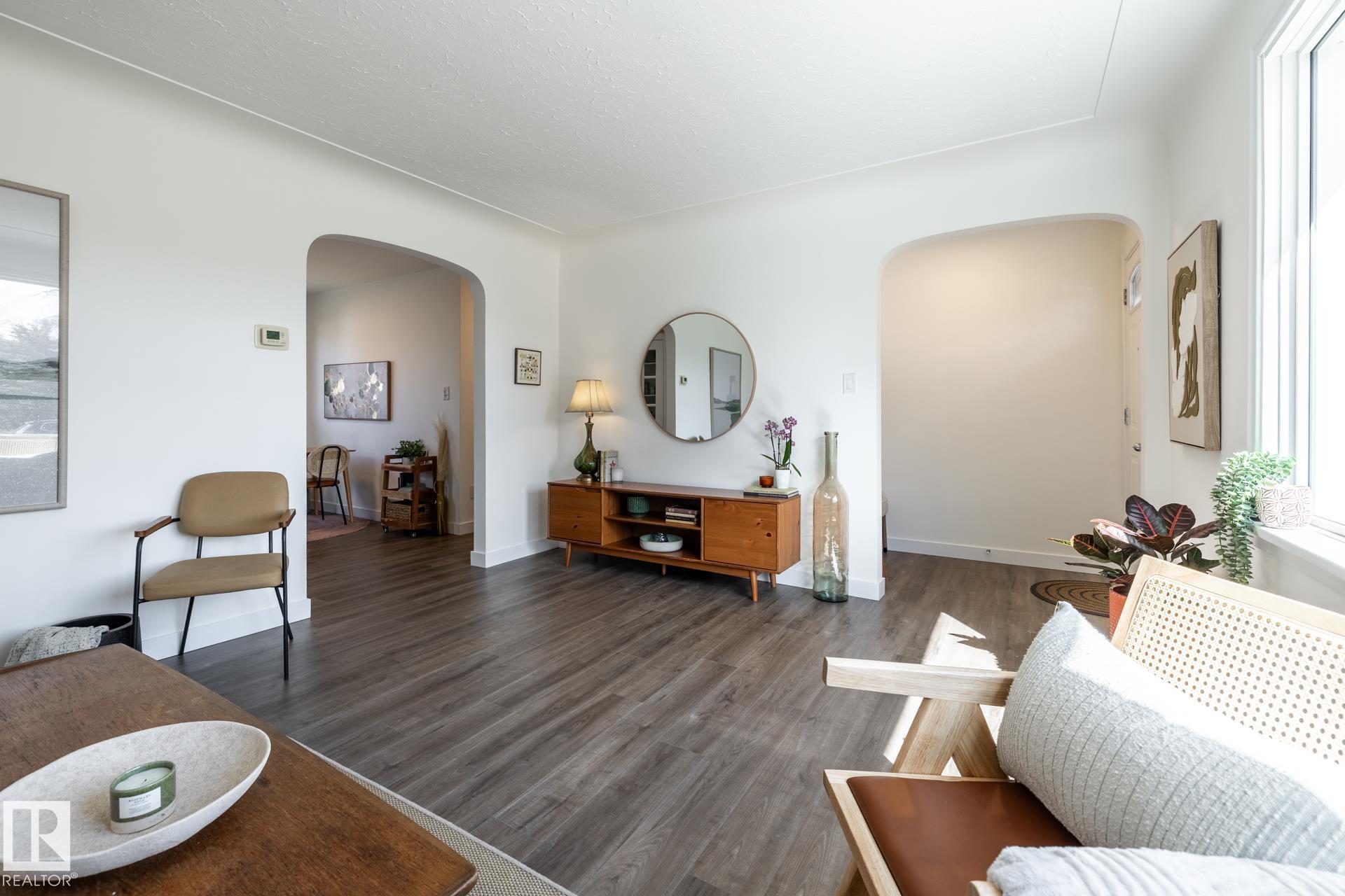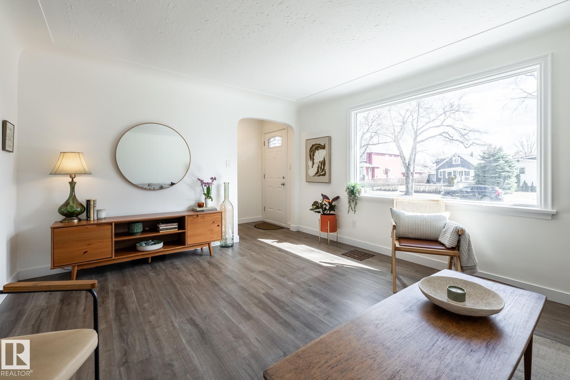 Impeccably maintained 1952 bungalow in Westmount offering over 1,600 sq ft of finished living space on a 6,724 sq ft lot. The home holds the details that define its era?arched openings, decorative ceilings, and character that has been intentionally preserved. Major updates are complete, including flooring, lighting, paint, roof, furnace, hot water tank, electrical, plumbing, and bathrooms. Two bedrooms on the main floor with bright living and dining spaces, a functional kitchen, pantry, and full bath. The lower level adds two more bedrooms, a large rec room, laundry, and a half bath, with a separate entrance for future flexibility. West-facing backyard with mature trees creating full summer privacy, a fire pit, and new cedar fencing. Detached garage with covered carport and rear lane access. Set in Westmount, on a quiet treelined street, steps to everything one could ever want.
