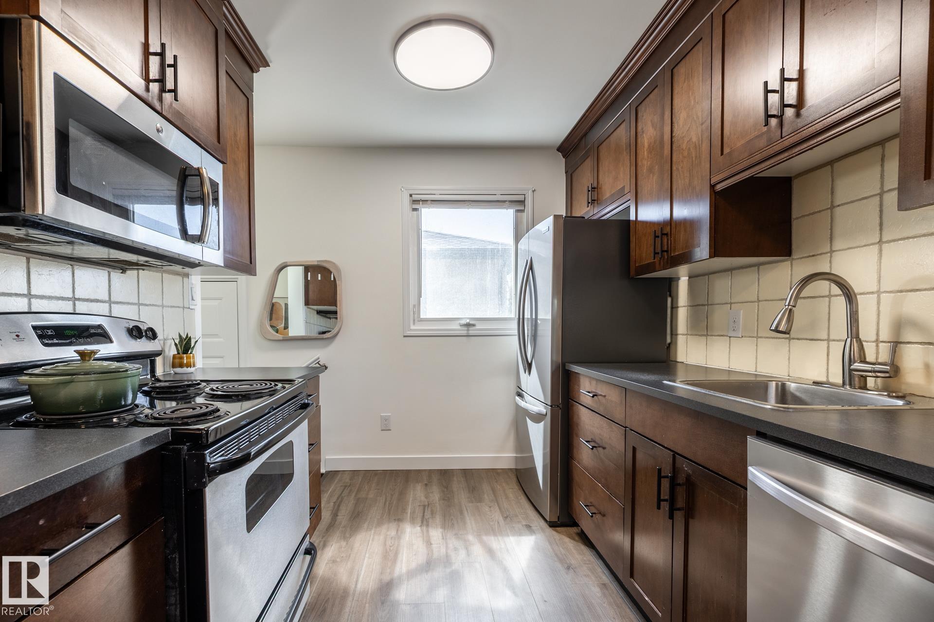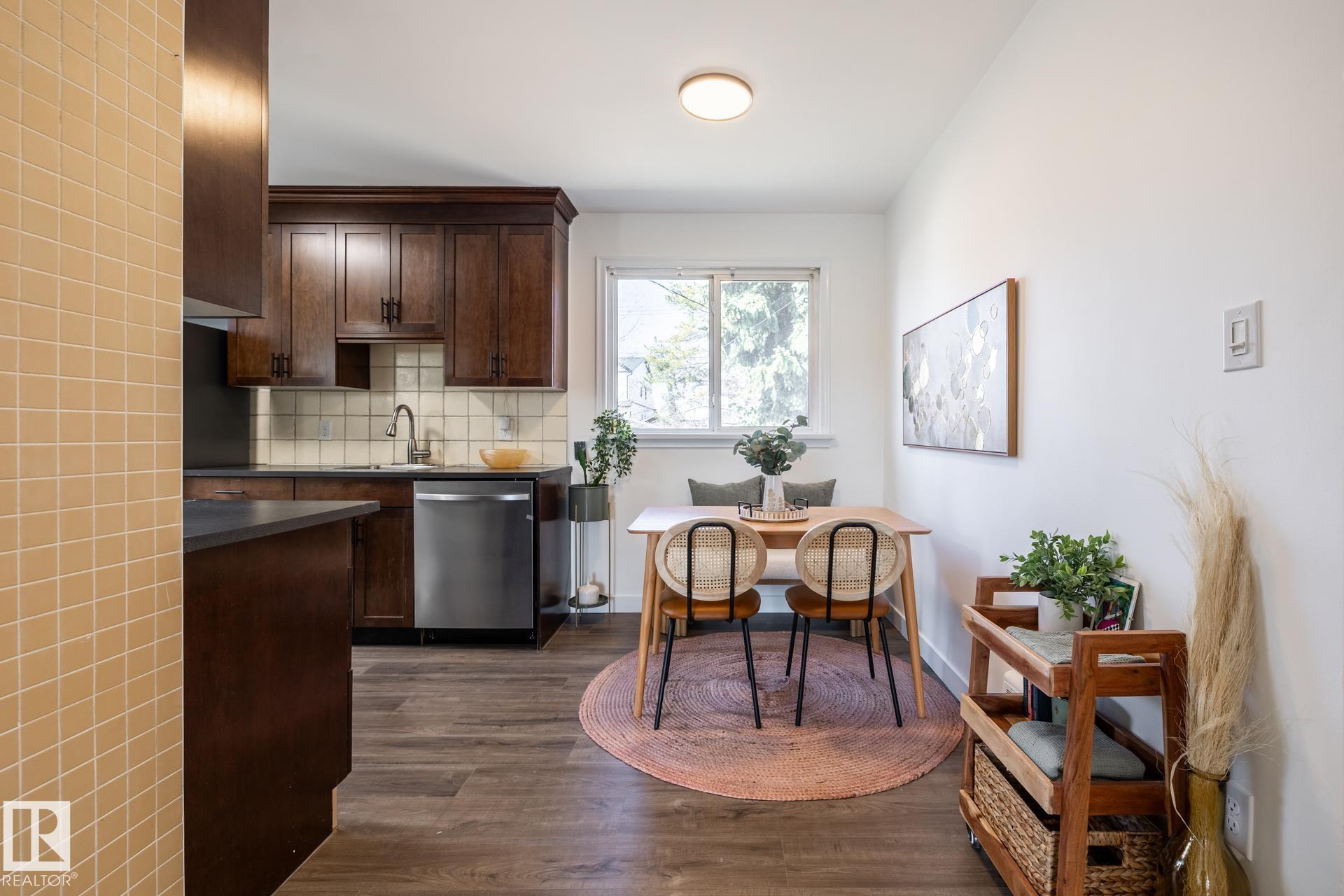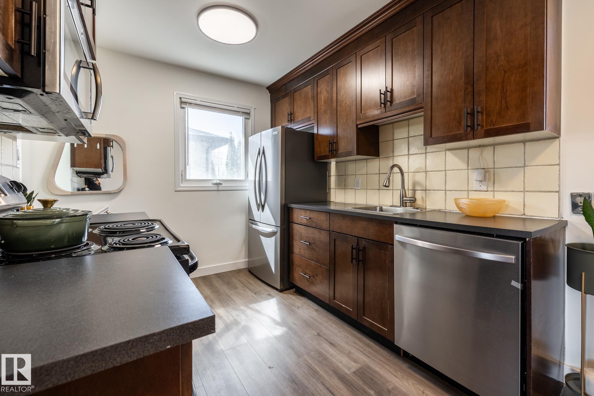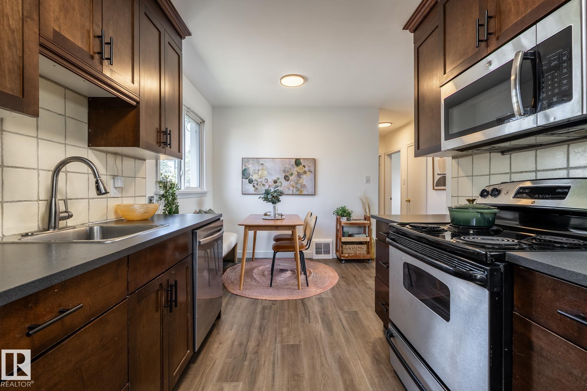 Impeccably maintained 1952 bungalow in Westmount offering over 1,600 sq ft of finished living space on a 6,724 sq ft lot. The home holds the details that define its era?arched openings, decorative ceilings, and character that has been intentionally preserved. Major updates are complete, including flooring, lighting, paint, roof, furnace, hot water tank, electrical, plumbing, and bathrooms. Two bedrooms on the main floor with bright living and dining spaces, a functional kitchen, pantry, and full bath. The lower level adds two more bedrooms, a large rec room, laundry, and a half bath, with a separate entrance for future flexibility. West-facing backyard with mature trees creating full summer privacy, a fire pit, and new cedar fencing. Detached garage with covered carport and rear lane access. Set in Westmount, on a quiet treelined street, steps to everything one could ever want.