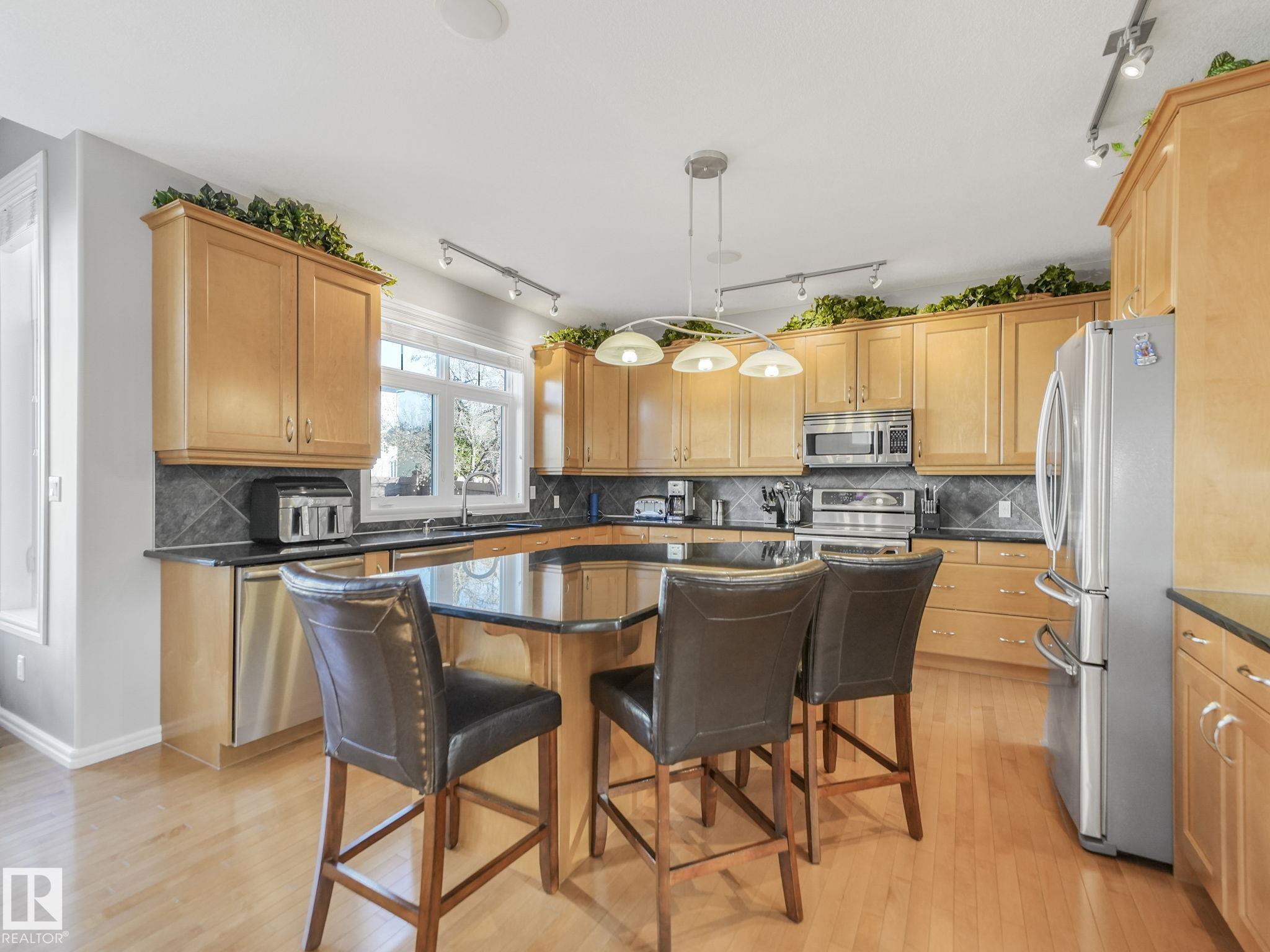 Welcome to this Exquisite F/F 2Storey, A/C, TRIPLE ATT. 30x26 HEATED GARAGE WITH EPOXY FLOORING, & W/Over 4600Sq.Ft of Living Space offers the perfect blend of comfort and sophistication. As you enter, you are greeted by a spacious open-concept layout featuring high ceilings and an abundance of natural light. The gourmet kitchen boasts 7-Appliances, GRANITE Countertops, a Lg Island, with 2-BI DISHWASHERS, ideal for entertaining or family gatherings. Plus a dinette facing the backyard & an inviting living room features a sleek fireplace. There is a Separate Dining Room for 8+Guests & a versatile office space. Upstairs has a BONUS ROOM, UPPER LAUNDRY & A lavish Primary Bdrm w/a spa-like 6Pc Ensuite & a generous walk-in closet. Plus 2-Bdrms and a full 4pc bath. The F/F Basement has a Theater Room w/a Projector TV, Games Room w/a Pool Table, Bdrm w/a Full 4pc Bath & lots of storage. The backyard has a lg deck, & 2-Sheds. Quiet Neighborhood w/walking paths, schools, & quick access to Whitemud & The Henday.