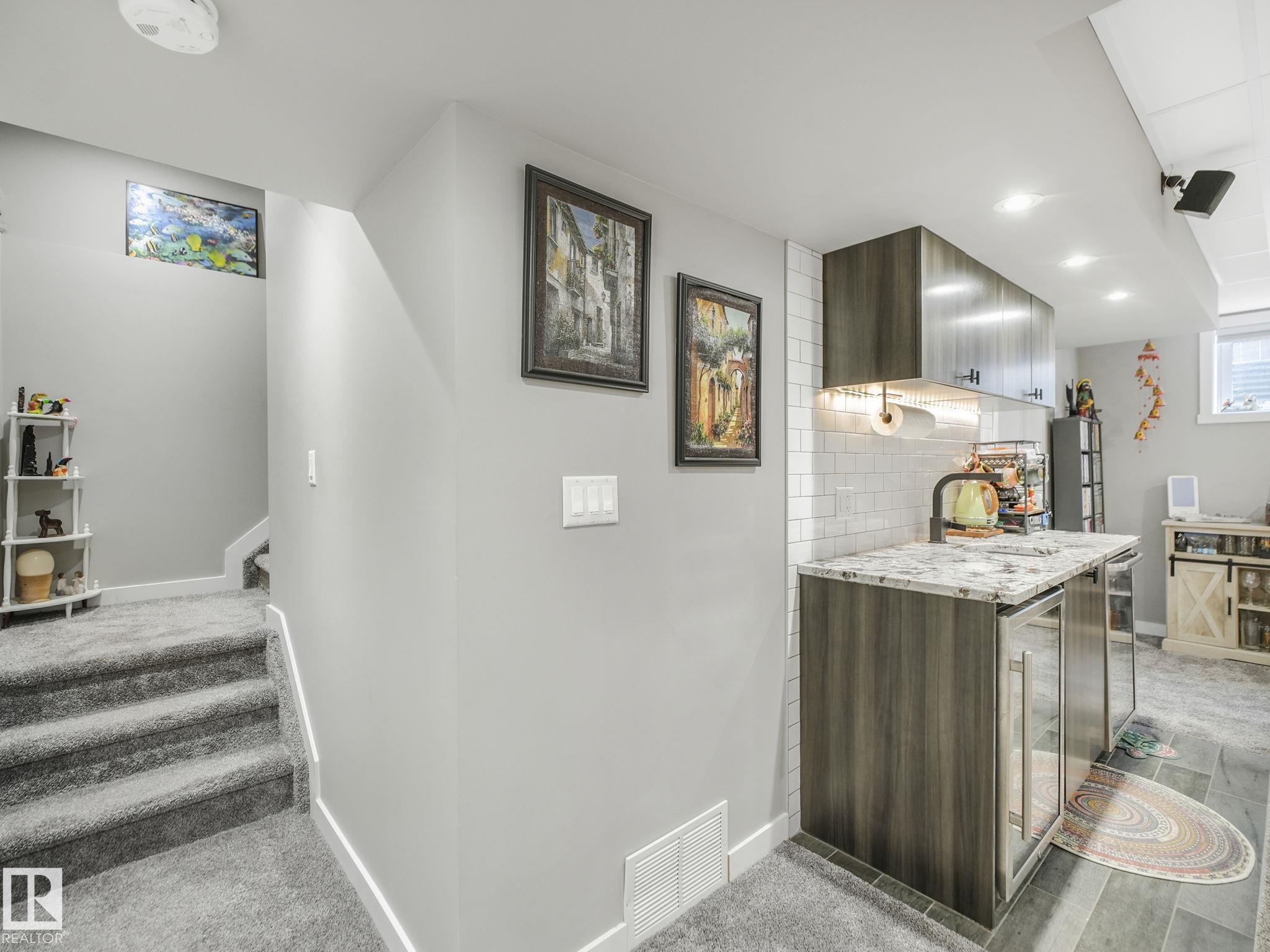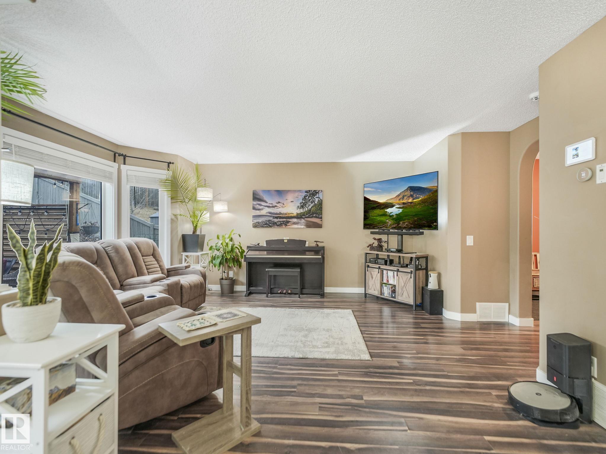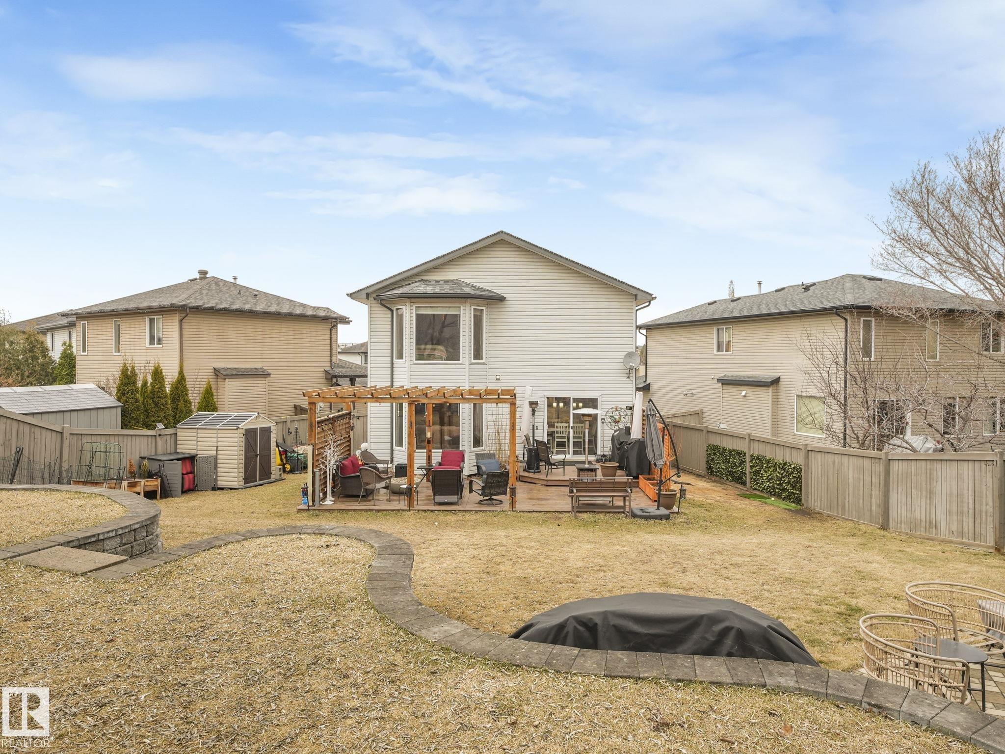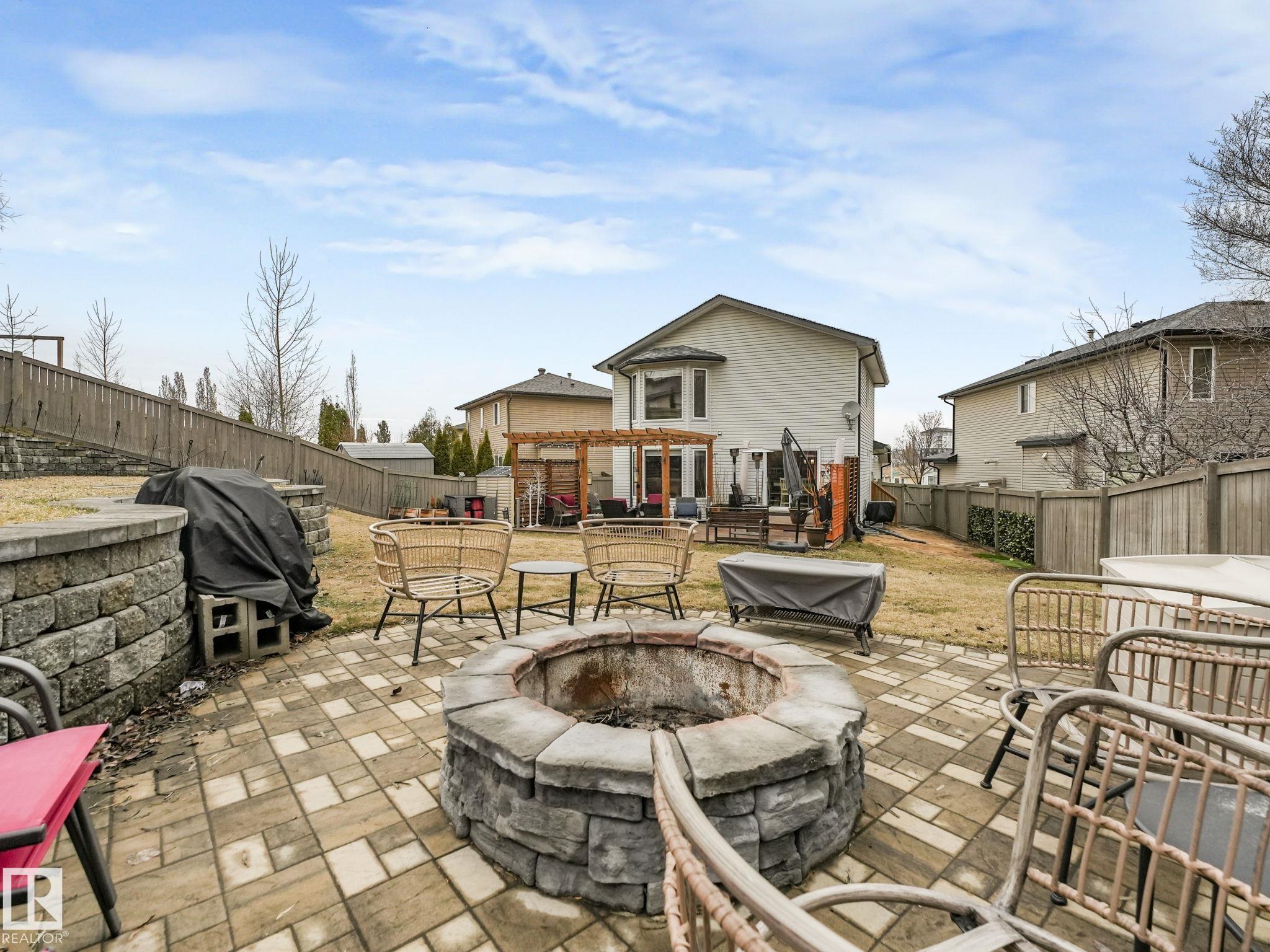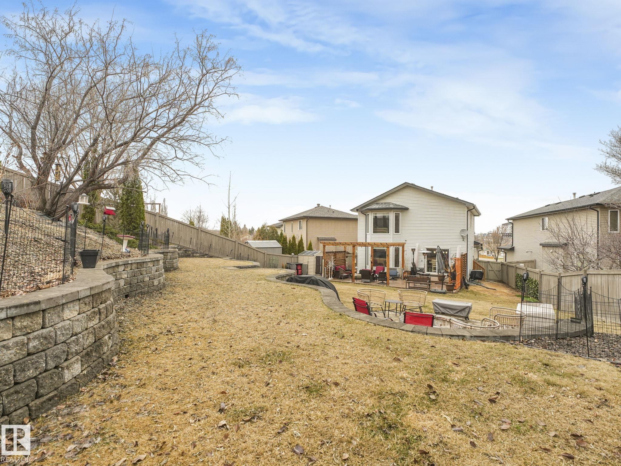 Check out this RARE oversized pie lot tucked into a quiet cul-de-sac! This beautifully cared for 2 storey offers approx 2446 sq ft of total living space across all 3 levels w 4 bedrooms & 3.5 bathrooms. The main floor features an open concept layout w a bright living room, spacious kitchen w stainless steel appliances & some soft close cabinets, lg island, dining area overlooking the backyard, corner pantry, plus mudroom & laundry w SEP SIDE entry. Upstairs you will find 3 bedrooms, a generous bonus room with gas fireplace, full bath & a spacious primary suite w double closets & a 4 piece ensuite. The fully finished basement adds a rec theatre space with built in bar & granite counters, an additional bedroom, full bath & storage. Notable upgrades include central A C, heated garage, new shingles Fall 2025, well designed landscaping & a built in Alexa. Enjoy the massive landscaped southwest facing 0.28 acre pie lot with patio & fire feature just minutes to trails, parks, schools & the river valley!