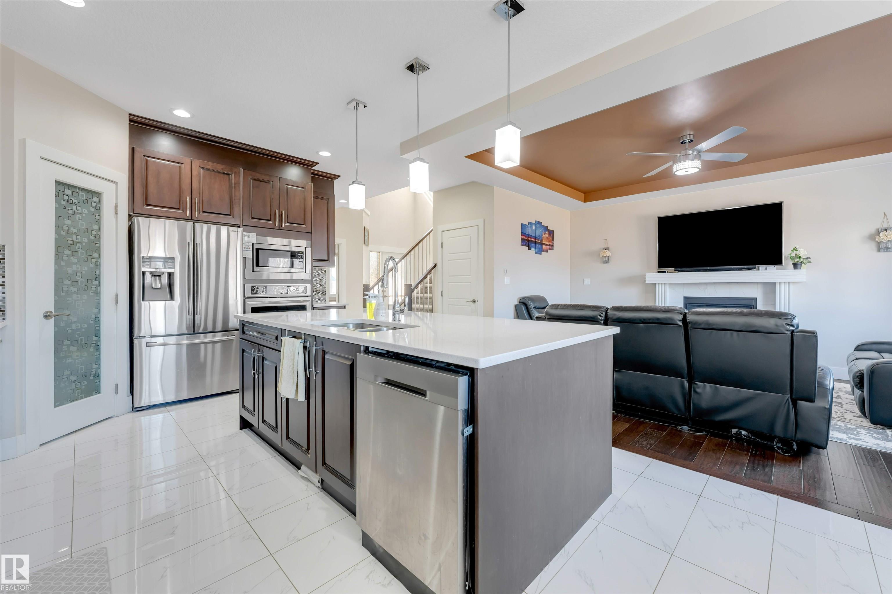 Welcome to this well-designed over 2,000 sq ft home in Allard, offering a functional layout and modern upgrades throughout. The main floor features a bedroom, half bath, and an open-to-above foyer, along with an upgraded kitchen with built-in oven and microwave that flows into the living and dining areas. Upstairs includes a spacious primary bedroom with ensuite, two additional bedrooms, a full bathroom, and a bonus room. The fully developed basement with SEPARATE ENTRANCE offers a SECOND KITCHEN, two bedrooms, a full bathroom, and living area. Additional highlights include a HEATED double attached garage and a convenient Southwest Edmonton location close to schools, parks, shopping, and major routes.