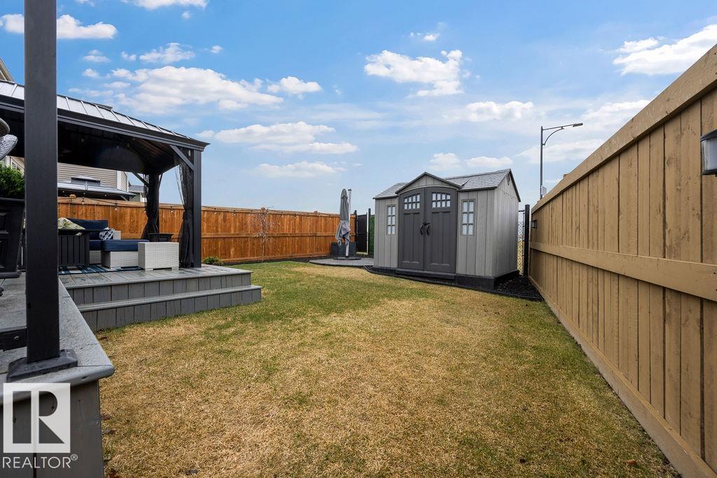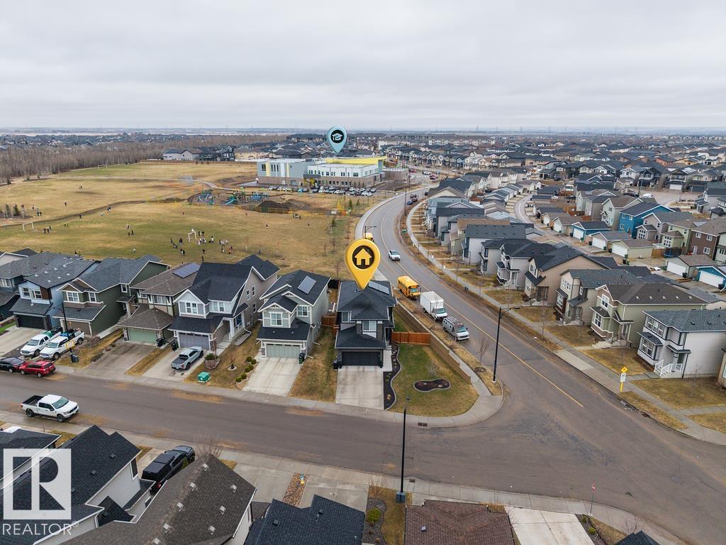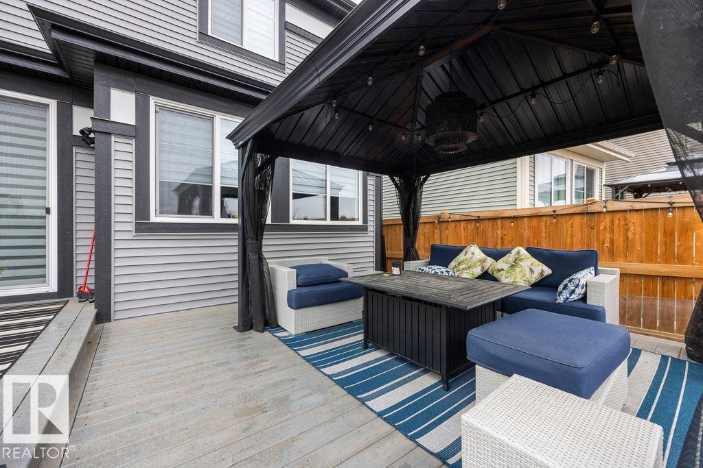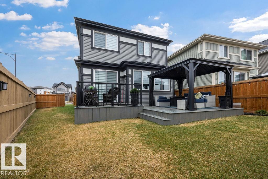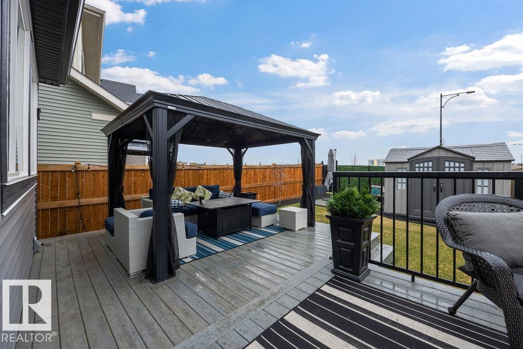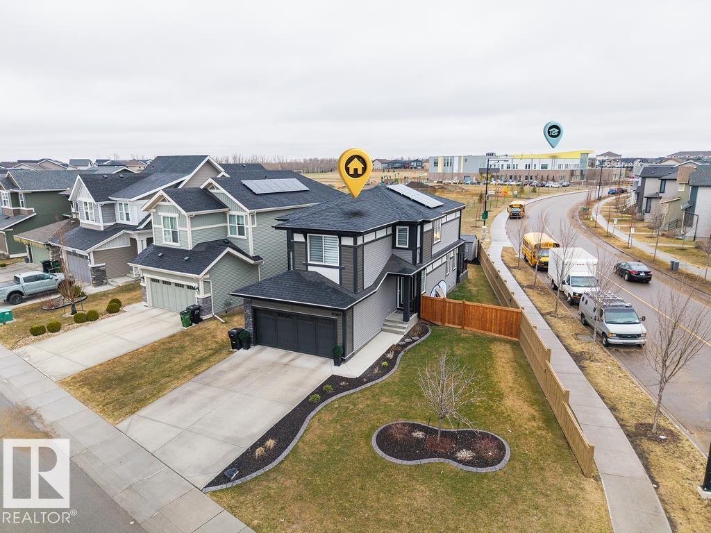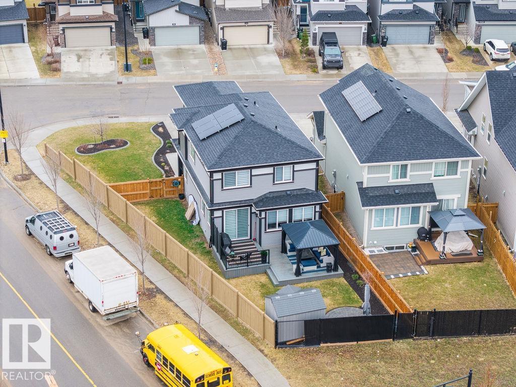 Enjoy the luxury and modern appeal of a newer build with the convenience of a pre-loved home, where landscaping, fencing, window coverings and an expansive deck are already in place. Set on a corner lot in McConachie backing onto open green space with a school just beyond the field, this beautifully cared for two-storey offers privacy and an ideal setting for families. Offering over 1,800 sq ft, 3 bedrooms and 2.5 baths, the home features a bright open-concept main floor with contemporary finishes, large windows, and a stylish kitchen with stainless steel appliances and central island. Added features like air conditioning, solar panels and a heated oversized garage with floor drain enhance comfort and function. Upstairs offers a spacious primary retreat with walk-in closet and ensuite, plus two additional bedrooms, bonus area and upper laundry. Outside, enjoy an expansive deck with gazebo, stone fire pit area and storage shed. Thoughtful upgrades make this move-in ready home a blend of style and value.