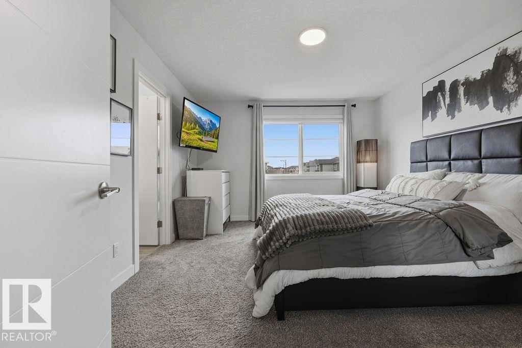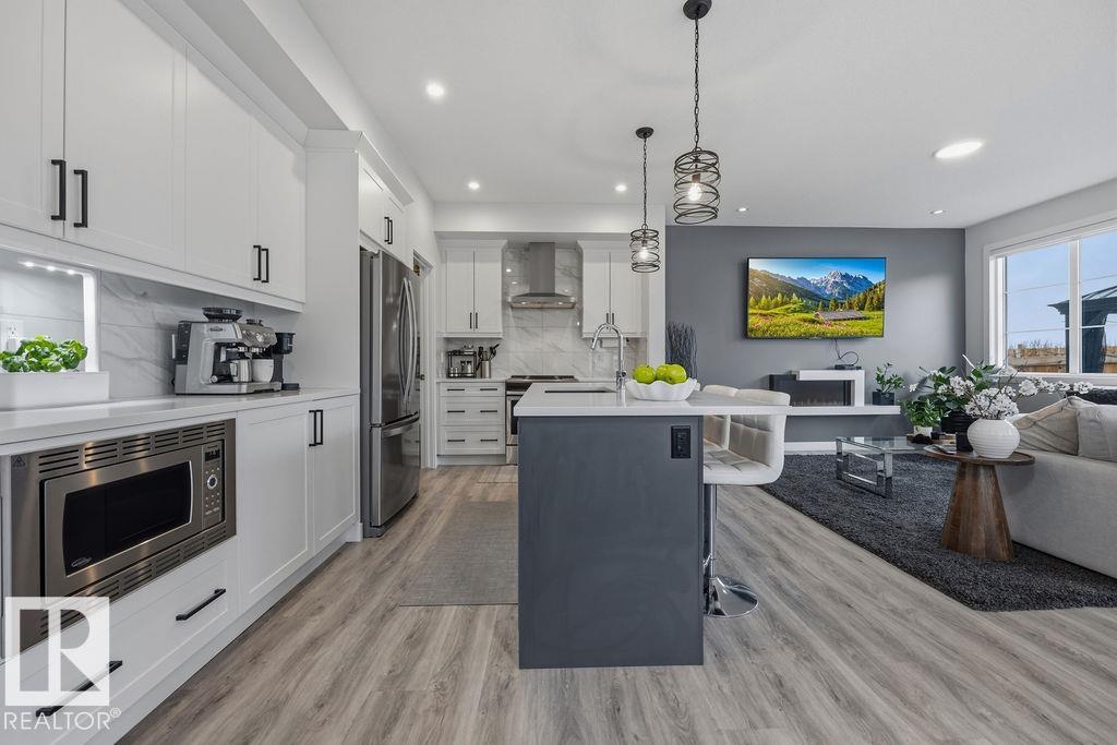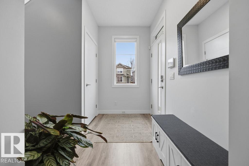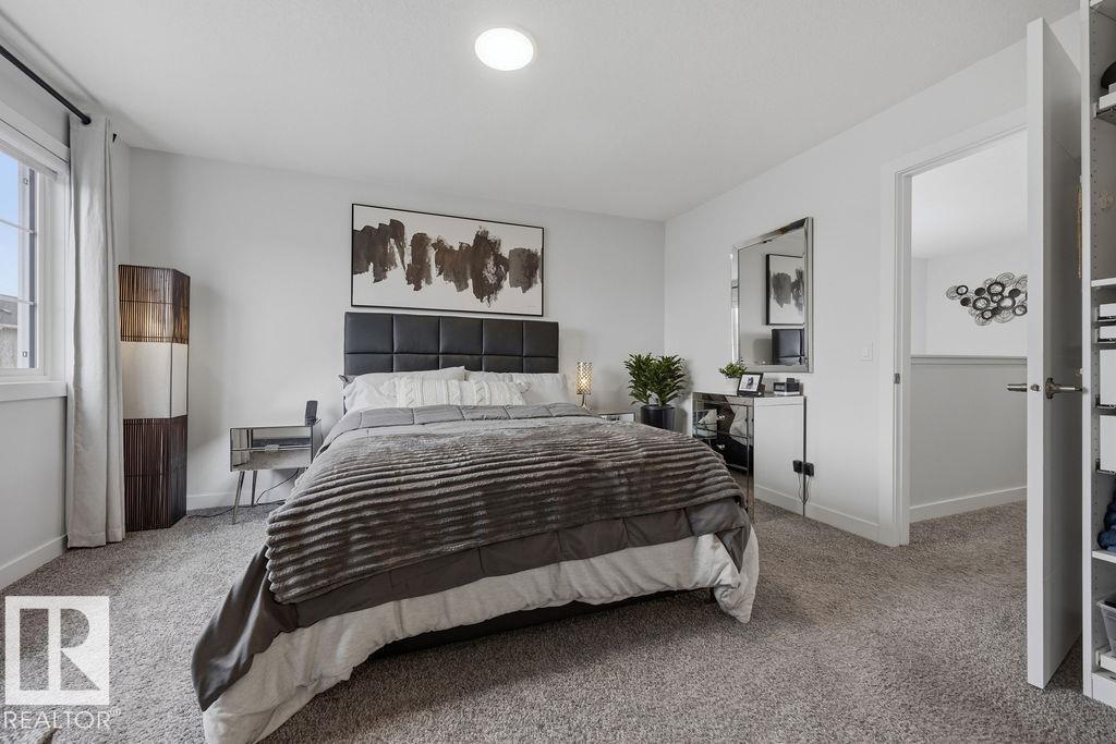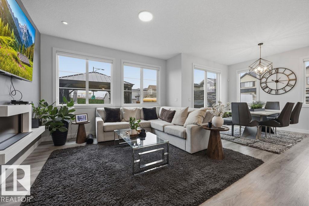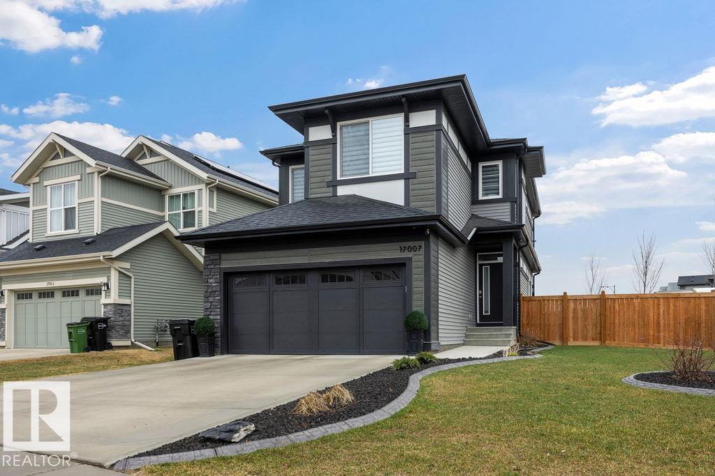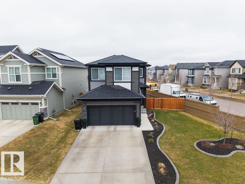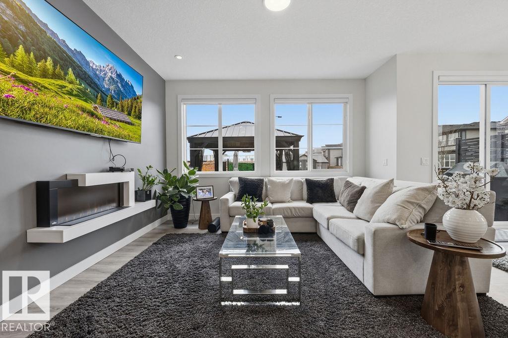 Enjoy the luxury and modern appeal of a newer build with the convenience of a pre-loved home, where landscaping, fencing, window coverings and an expansive deck are already in place. Set on a corner lot in McConachie backing onto open green space with a school just beyond the field, this beautifully cared for two-storey offers privacy and an ideal setting for families. Offering over 1,800 sq ft, 3 bedrooms and 2.5 baths, the home features a bright open-concept main floor with contemporary finishes, large windows, and a stylish kitchen with stainless steel appliances and central island. Added features like air conditioning, solar panels and a heated oversized garage with floor drain enhance comfort and function. Upstairs offers a spacious primary retreat with walk-in closet and ensuite, plus two additional bedrooms, bonus area and upper laundry. Outside, enjoy an expansive deck with gazebo, stone fire pit area and storage shed. Thoughtful upgrades make this move-in ready home a blend of style and value.