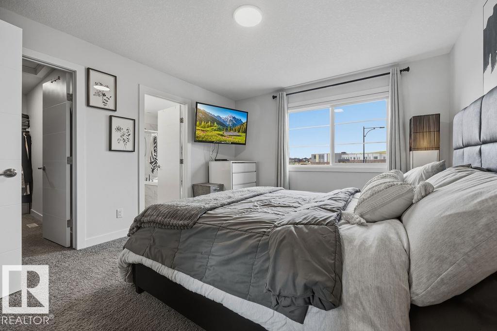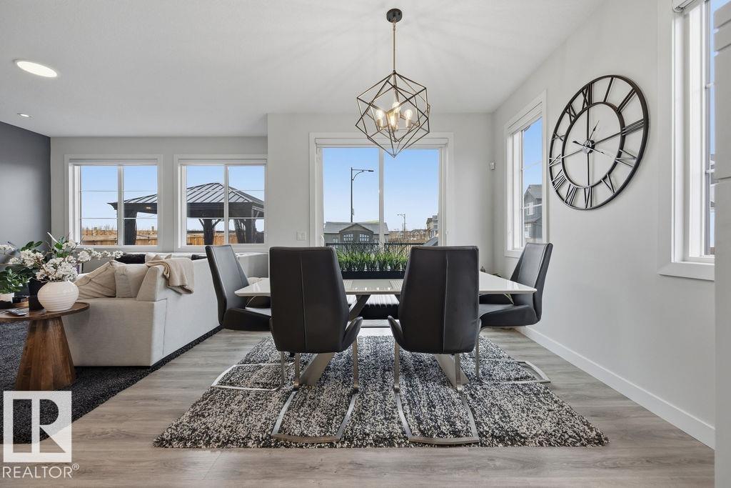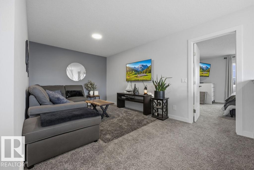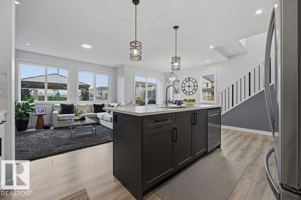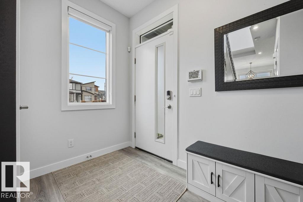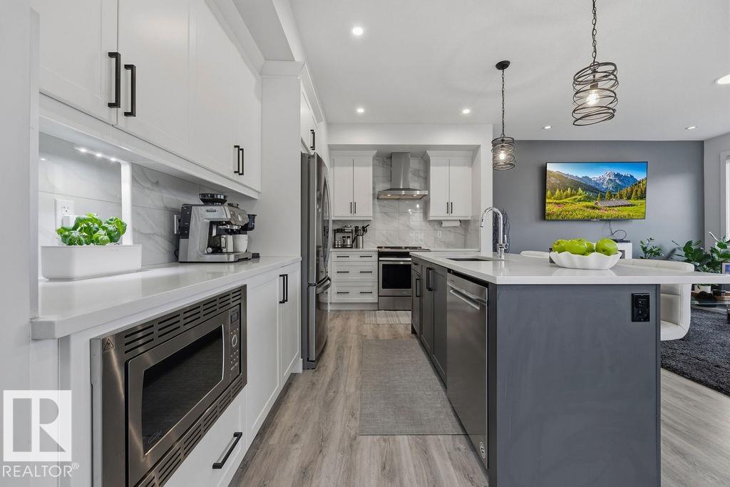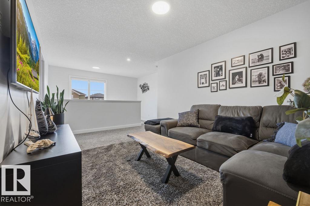 Enjoy the luxury and modern appeal of a newer build with the convenience of a pre-loved home, where landscaping, fencing, window coverings and an expansive deck are already in place. Set on a corner lot in McConachie backing onto open green space with a school just beyond the field, this beautifully cared for two-storey offers privacy and an ideal setting for families. Offering over 1,800 sq ft, 3 bedrooms and 2.5 baths, the home features a bright open-concept main floor with contemporary finishes, large windows, and a stylish kitchen with stainless steel appliances and central island. Added features like air conditioning, solar panels and a heated oversized garage with floor drain enhance comfort and function. Upstairs offers a spacious primary retreat with walk-in closet and ensuite, plus two additional bedrooms, bonus area and upper laundry. Outside, enjoy an expansive deck with gazebo, stone fire pit area and storage shed. Thoughtful upgrades make this move-in ready home a blend of style and value.