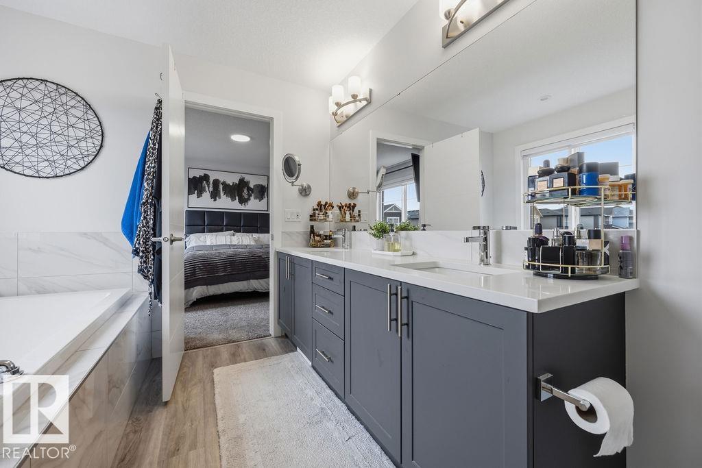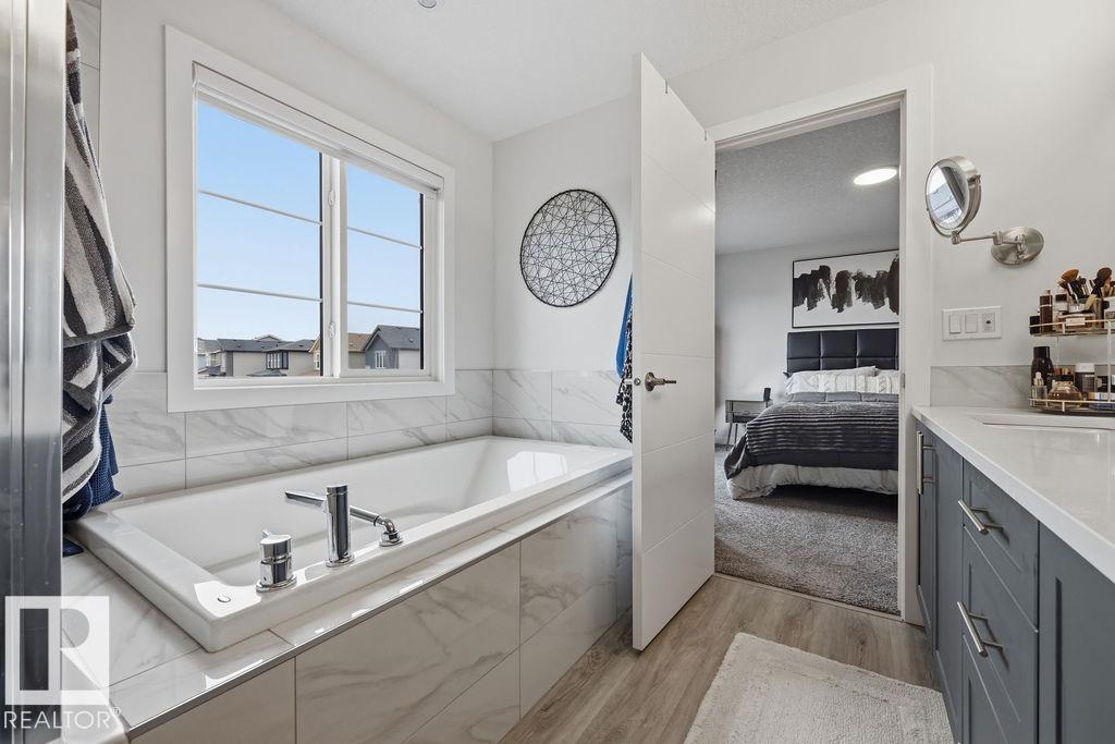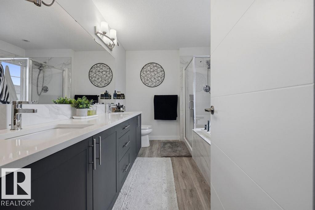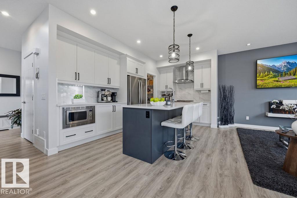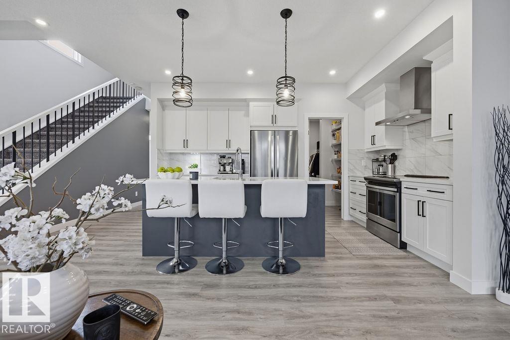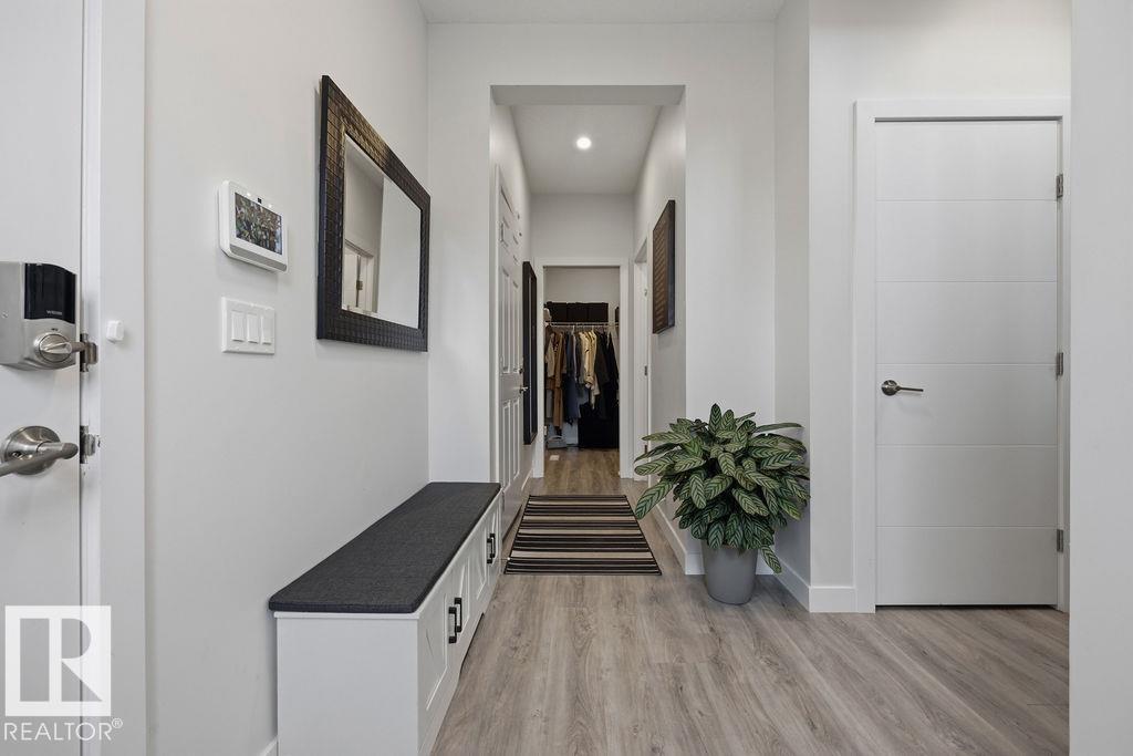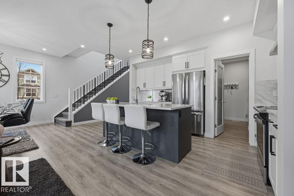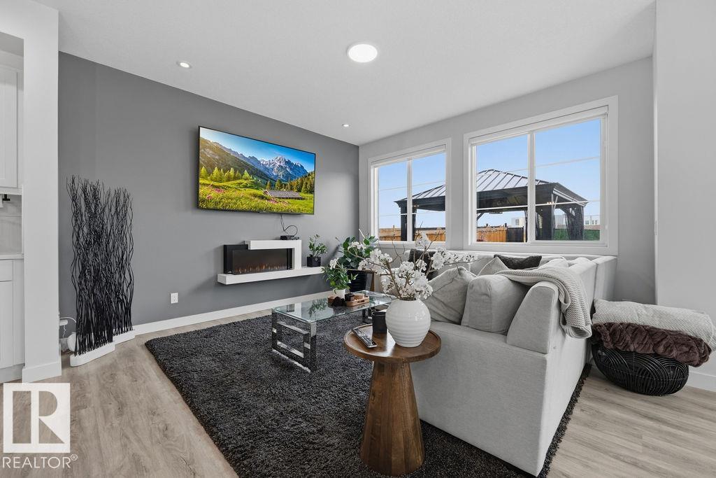 Enjoy the luxury and modern appeal of a newer build with the convenience of a pre-loved home, where landscaping, fencing, window coverings and an expansive deck are already in place. Set on a corner lot in McConachie backing onto open green space with a school just beyond the field, this beautifully cared for two-storey offers privacy and an ideal setting for families. Offering over 1,800 sq ft, 3 bedrooms and 2.5 baths, the home features a bright open-concept main floor with contemporary finishes, large windows, and a stylish kitchen with stainless steel appliances and central island. Added features like air conditioning, solar panels and a heated oversized garage with floor drain enhance comfort and function. Upstairs offers a spacious primary retreat with walk-in closet and ensuite, plus two additional bedrooms, bonus area and upper laundry. Outside, enjoy an expansive deck with gazebo, stone fire pit area and storage shed. Thoughtful upgrades make this move-in ready home a blend of style and value.