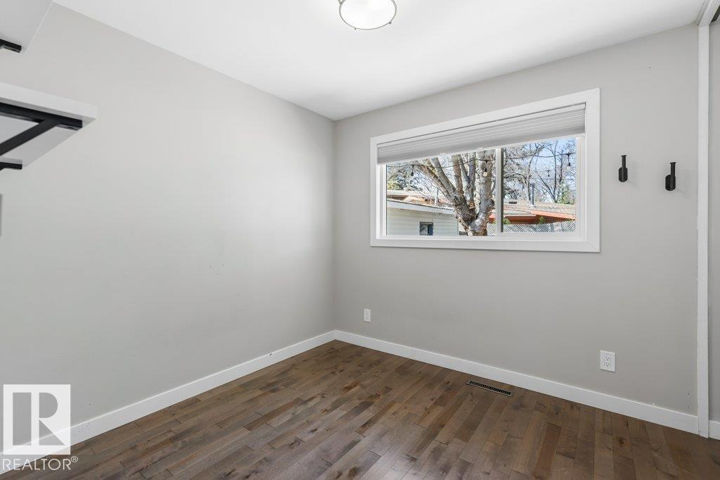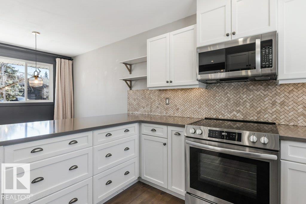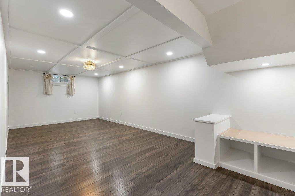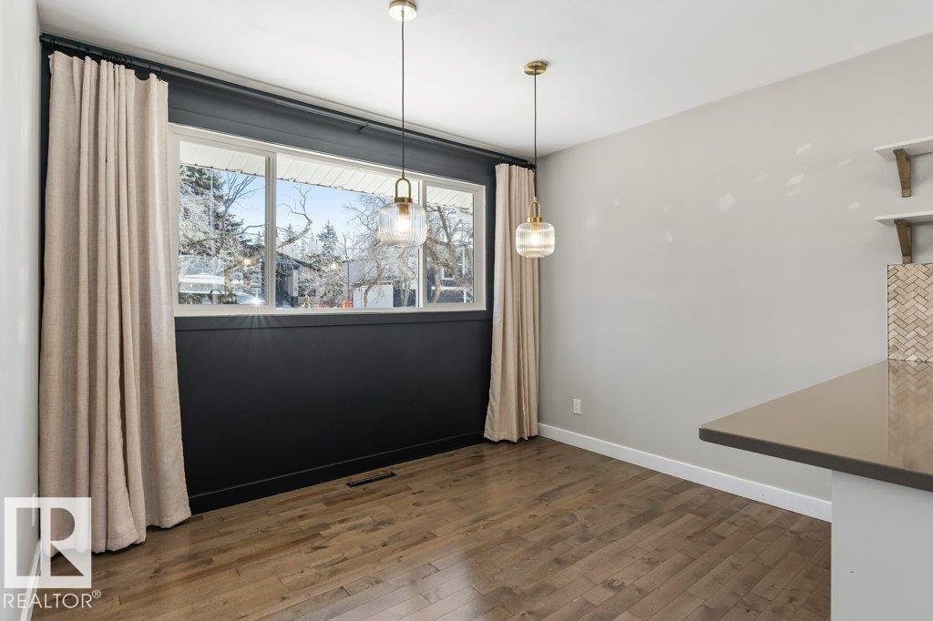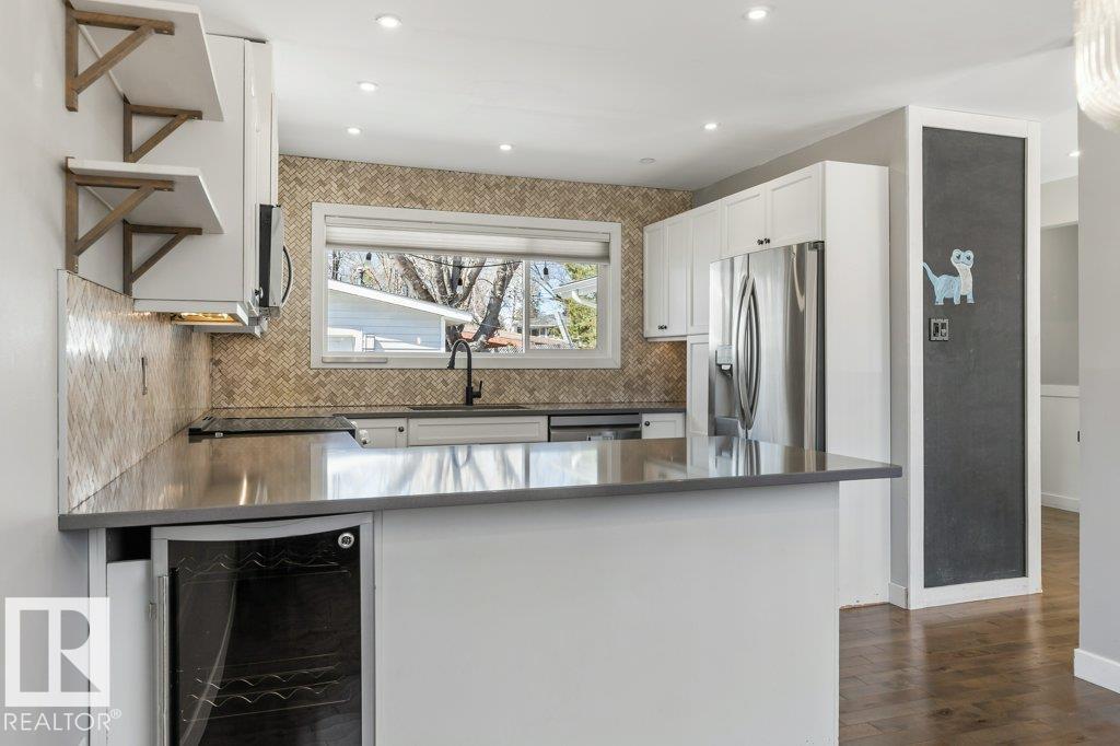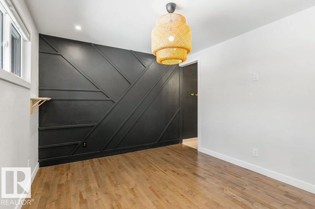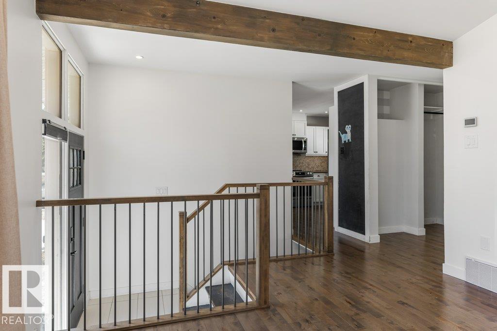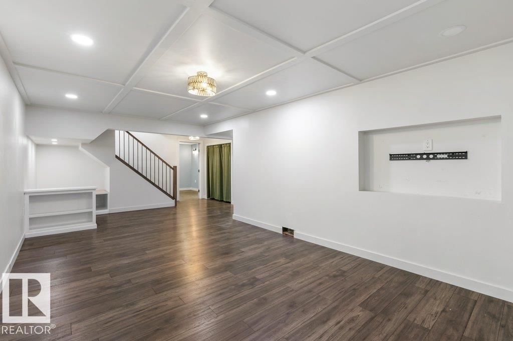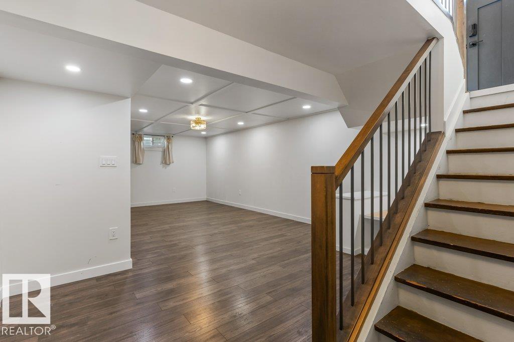 Welcome to this beautifully maintained 1,216 sq ft bungalow in the sought-after Gardens neighborhood of St. Albert. This home offers three spacious bedrooms on the main floor, including a primary suite with its own 3-piece ensuite, plus a full 4-piece main bath. The bright and inviting living room features vaulted ceilings, open beams, and large banks of windows that flood the space with natural light. The updated kitchen boasts quartz countertops and stainless steel appliances, with a separate dining area ideal for family meals and entertaining. Downstairs, the fully finished basement provides a large recreation room, versatile flex space, and ample storage with a dedicated laundry area and additional room for future development. Outside, enjoy a private deck with a built-in privacy screen, perfect for relaxing or hosting guests, along with a double detached garage. Located in a fantastic neighborhood close to downtown, Lions Park, the farmers? market, schools, and all amenities.