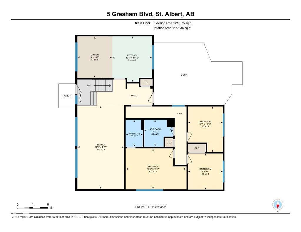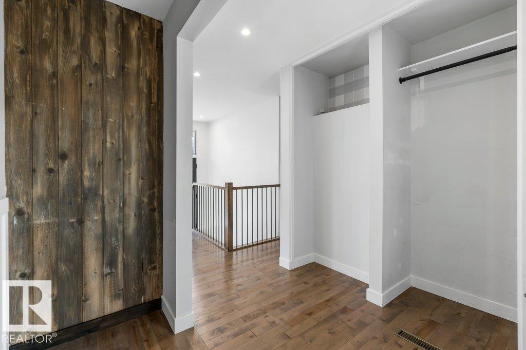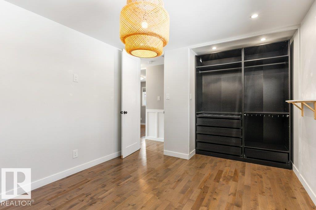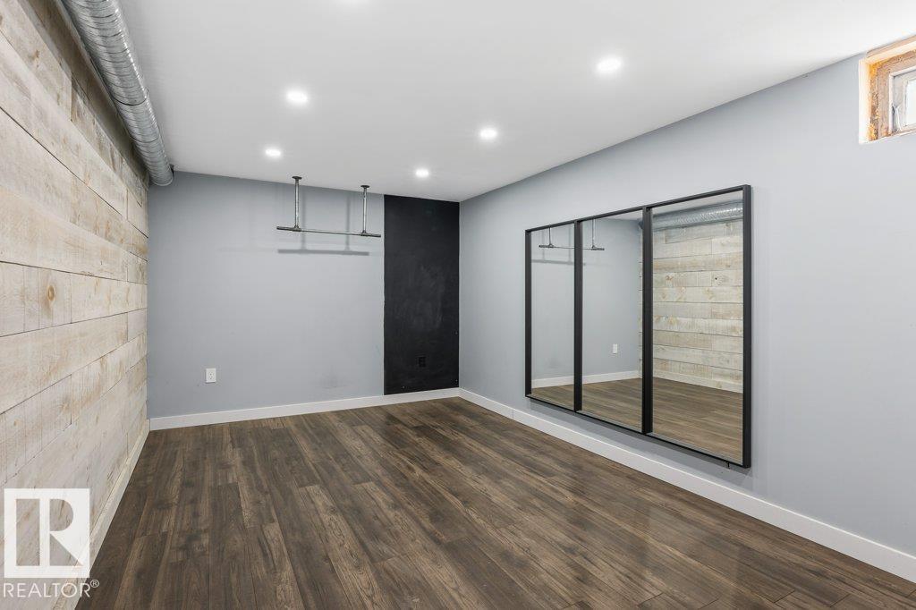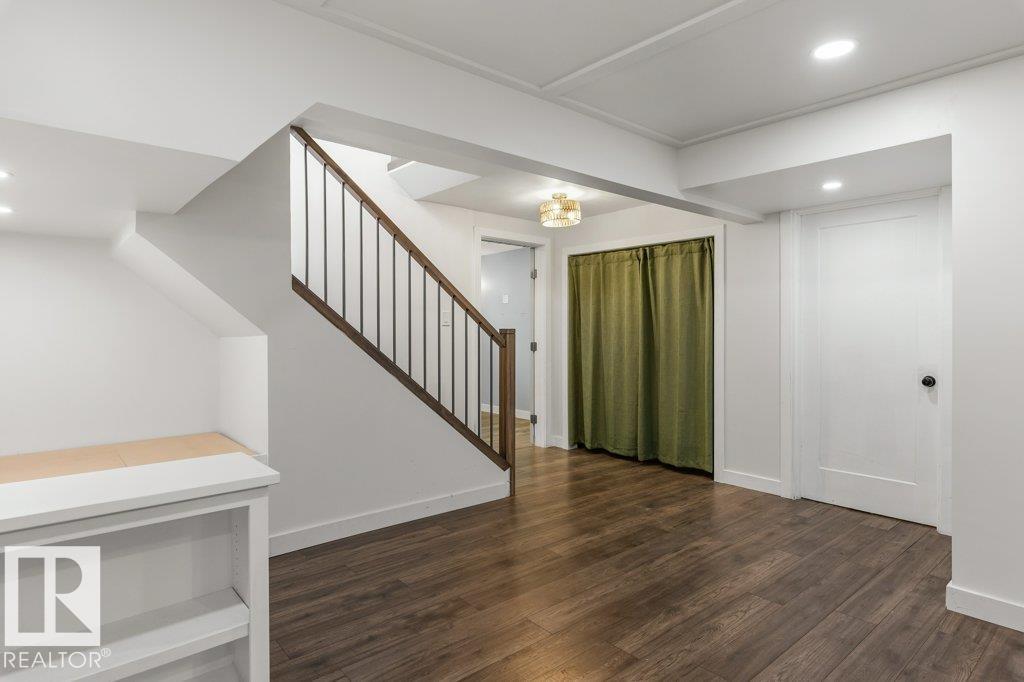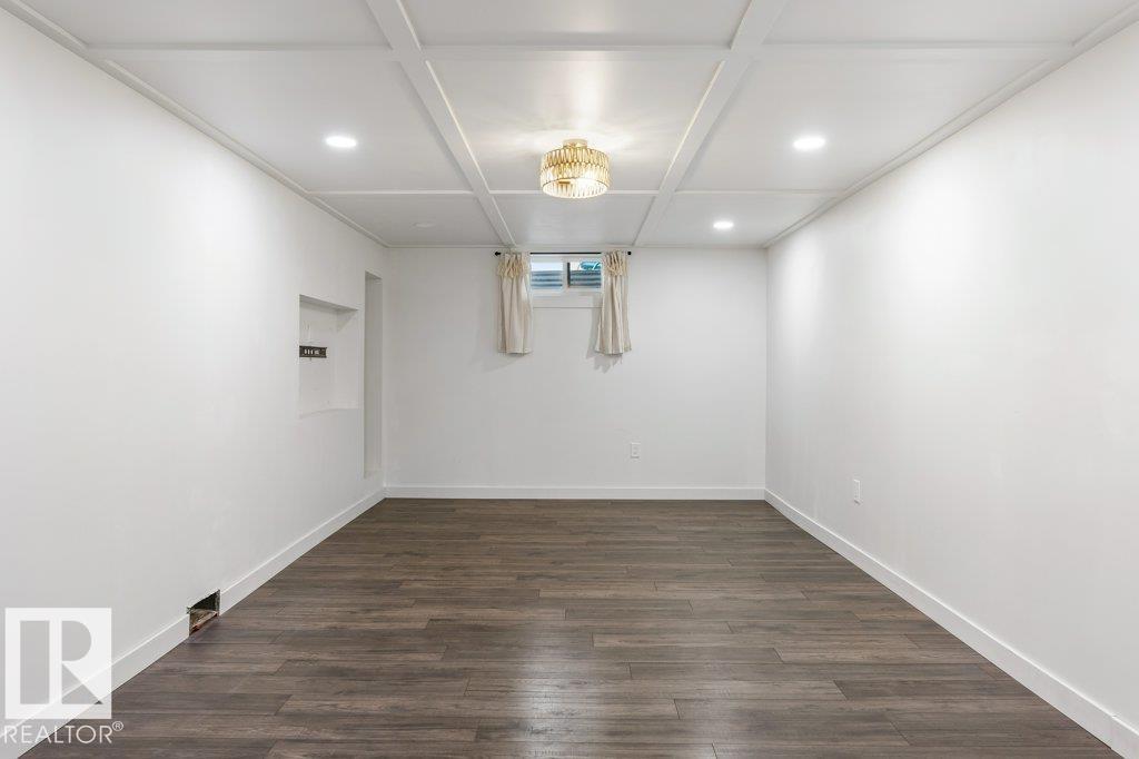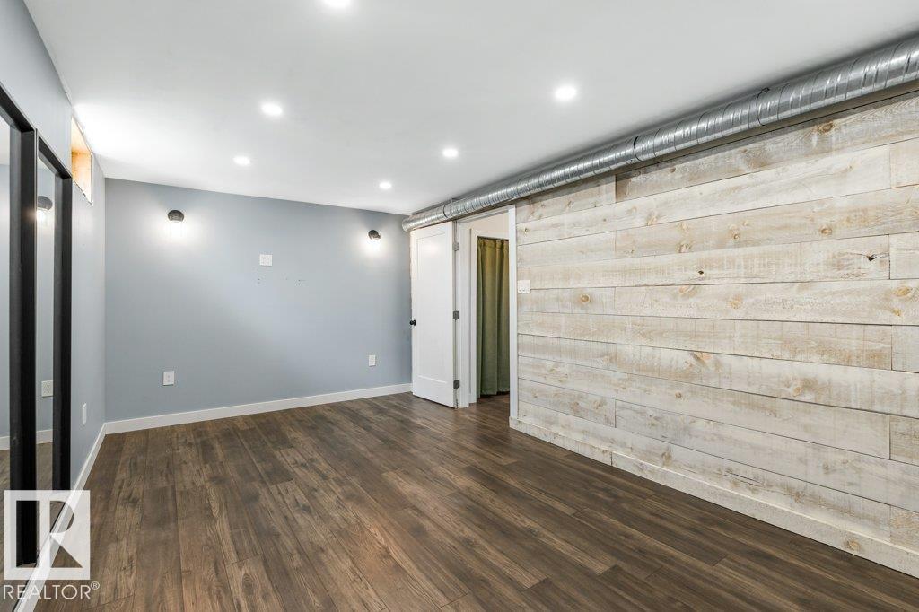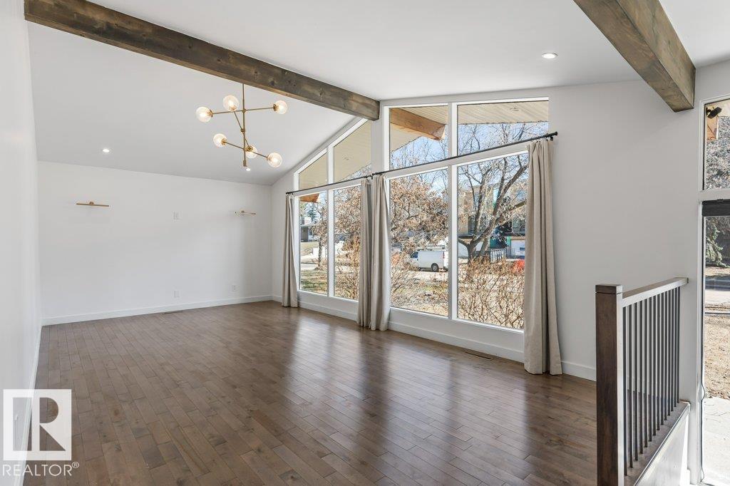 Welcome to this beautifully maintained 1,216 sq ft bungalow in the sought-after Gardens neighborhood of St. Albert. This home offers three spacious bedrooms on the main floor, including a primary suite with its own 3-piece ensuite, plus a full 4-piece main bath. The bright and inviting living room features vaulted ceilings, open beams, and large banks of windows that flood the space with natural light. The updated kitchen boasts quartz countertops and stainless steel appliances, with a separate dining area ideal for family meals and entertaining. Downstairs, the fully finished basement provides a large recreation room, versatile flex space, and ample storage with a dedicated laundry area and additional room for future development. Outside, enjoy a private deck with a built-in privacy screen, perfect for relaxing or hosting guests, along with a double detached garage. Located in a fantastic neighborhood close to downtown, Lions Park, the farmers? market, schools, and all amenities.